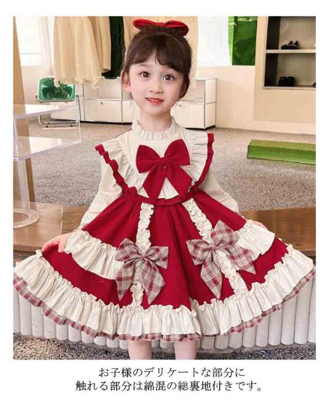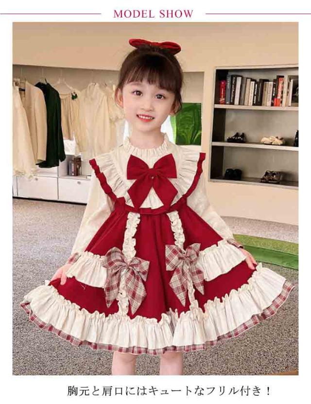 ゴスロリ キッズ ワンピース メイド リボン付き ロリータ チャイナ ロリ ゴシック Lolita系 ロリィタ 子供用 スカート 萌え萌え 少女ウェア 小悪魔 ハロウィン 子供 可愛い 二次元 ドレス 学園祭 文化祭 イベント クリスマス 女の子ワンピース 子供写真撮影