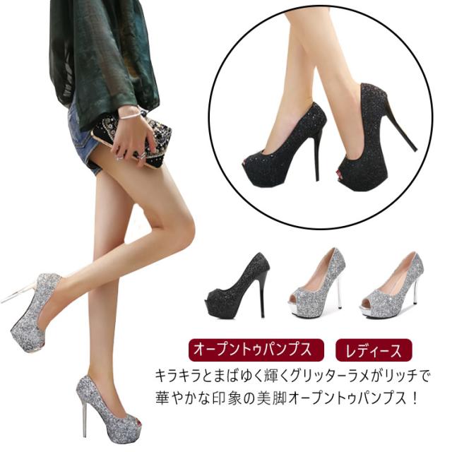 オープントゥパンプス パンプス ラメ オープントゥ 結婚式 レディース ハイヒール シューズ 靴 女性 大人 パーティー キャバ ピンヒール パーティー 二次会 結婚式 披露宴 謝恩会 お呼ばれ 同窓会 美脚 キャバ 10cm 12cm 14cm