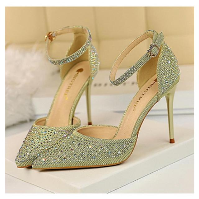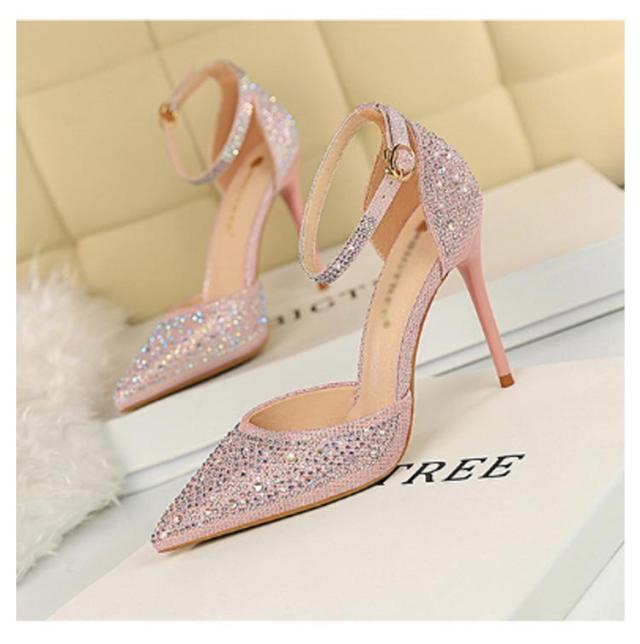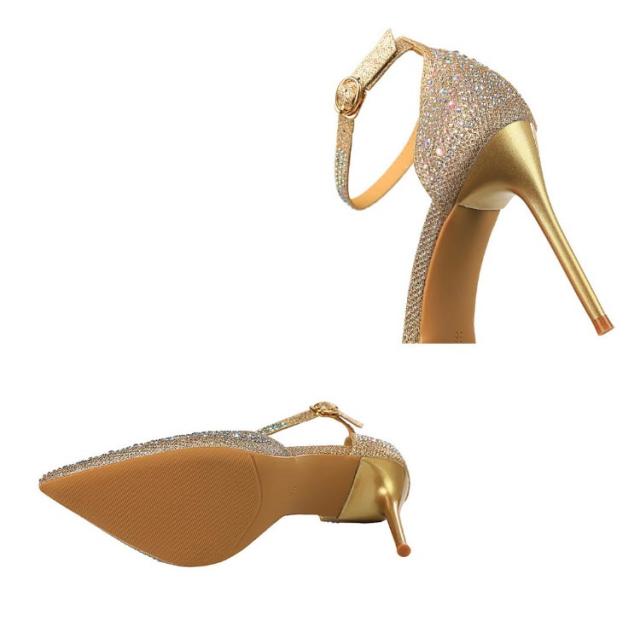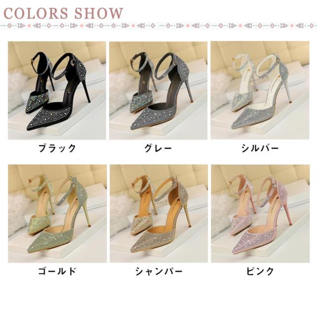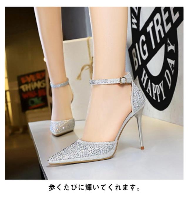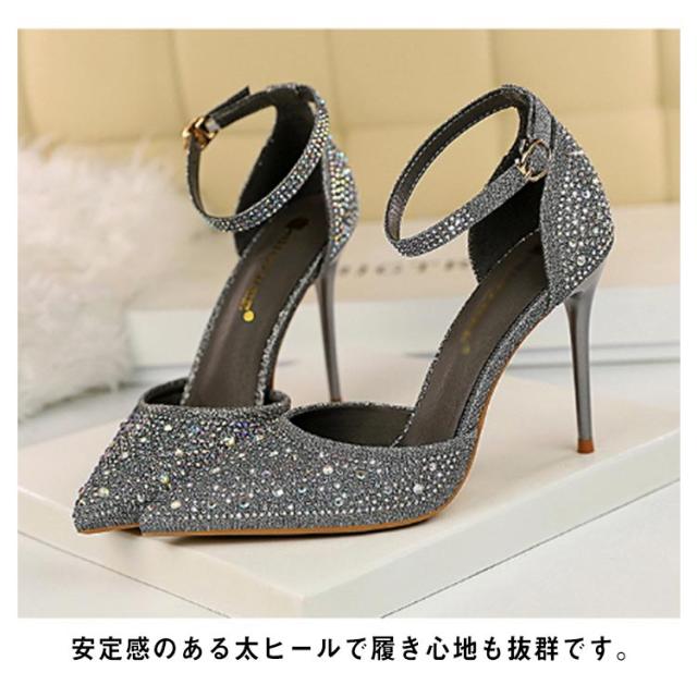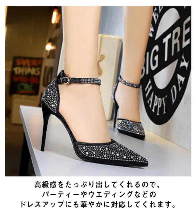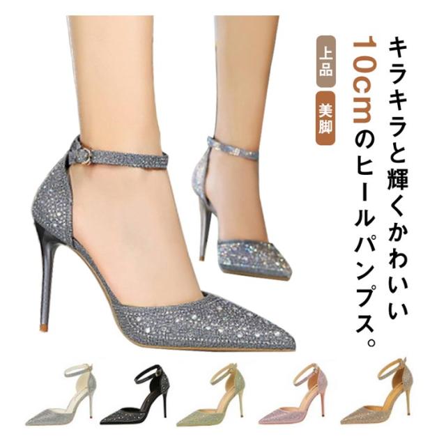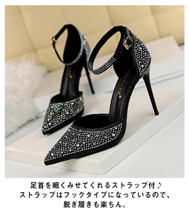 ハイヒール パンプス 10cmヒール ストラップ付き ピンヒール キラキラ ピンヒール ラインストーン キャバ 嬢 レディース シューズ 靴 結婚式 二次会 披露宴 謝恩会 パーティー 上品 お呼ばれ 同窓会 七五三 美脚 キャバ