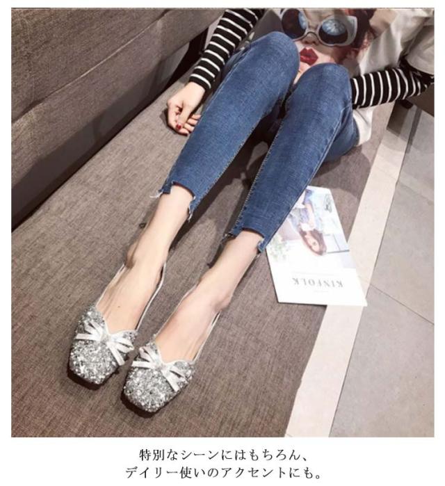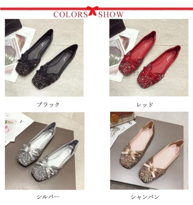 スクエアトゥ パンプス キラキラ ぺたんこ 痛くない Vカット ローヒール 結婚式 グリッター 走れる バレエシューズ フラット カラバリ オフィス 通勤 リボン パーティー パンプス 歩きやすい 大きいサイズ