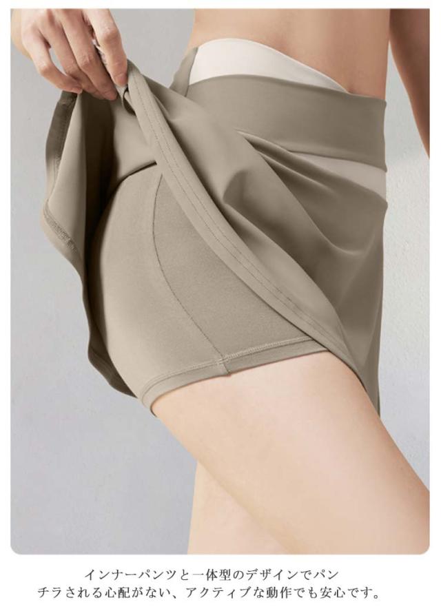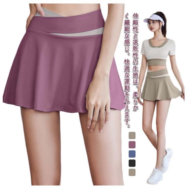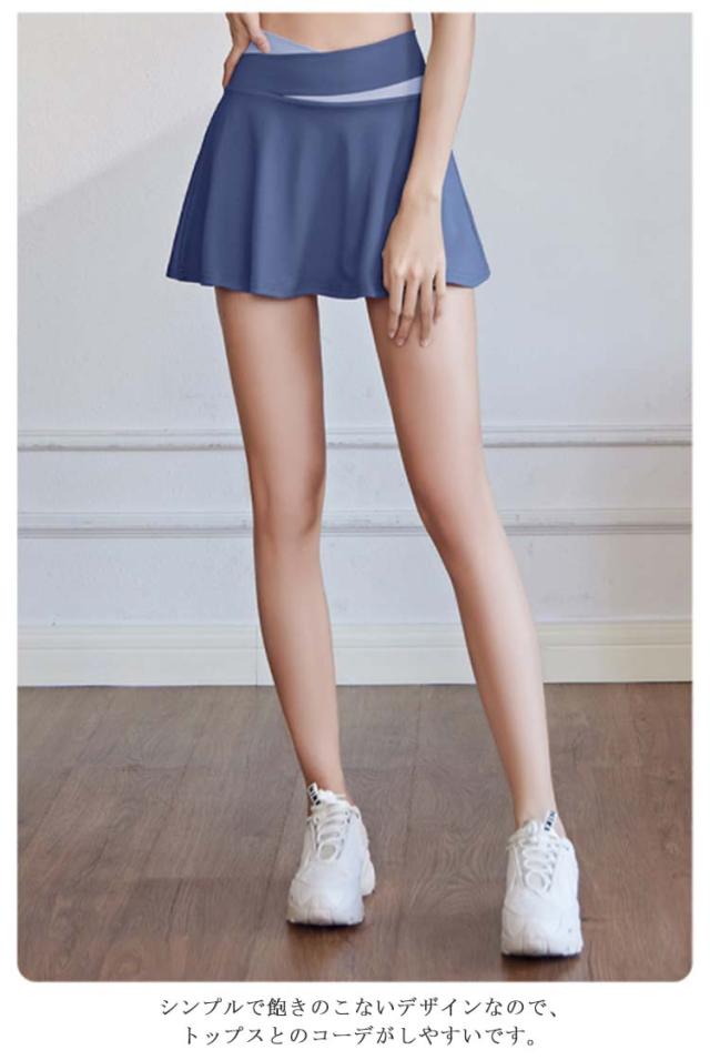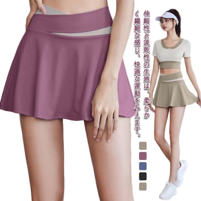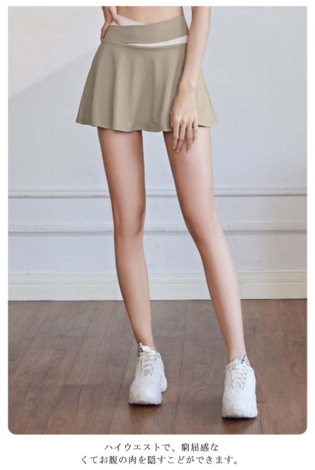 スカート ヨガウェア ゴルフウェア レディース 無地 インナーパンツ付き 裏地付き チアダンス テニス 運動着 白 黒 夏 速乾 ストレッチ 伸縮性 フレアスカート スポーツウェア ミニスカート ジム 送料無料