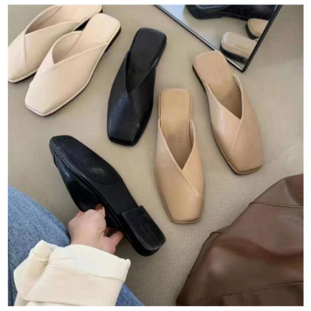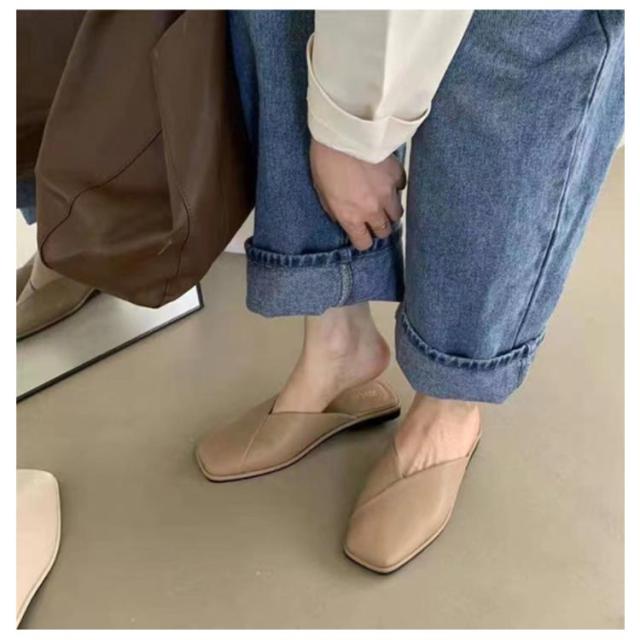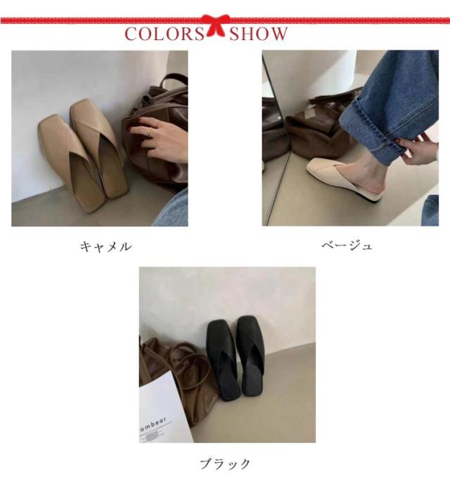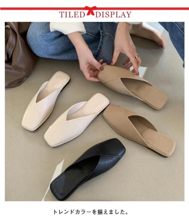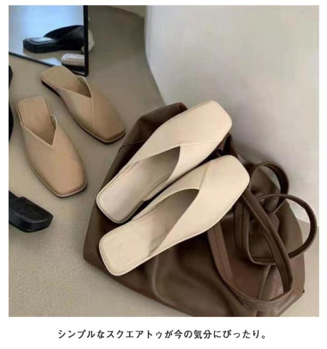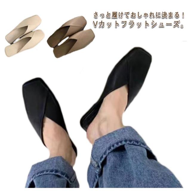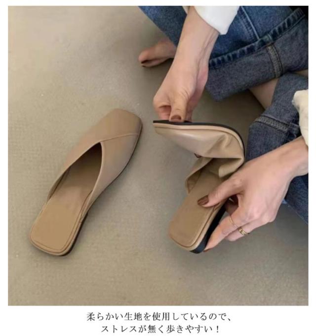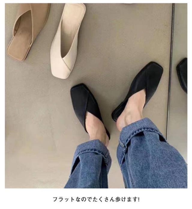 サンダル パンプス フラットシューズ レディース ローヒール 歩きやすい スクエアトゥ Vカット 痛くない 走れる ぺたんこ 可愛い お洒落 黒 ベージュ 春夏 小さいサイズ 大きいサイズ 楽チン 靴 送料無料