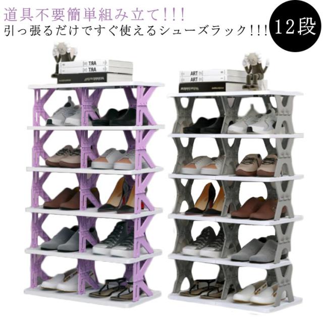 シューズラック スリム 省 スペース ラック 棚 おしゃれ 折り畳み 折りたたみ 12段 靴箱 玄関収納 下駄箱 靴棚 収納ボックス 伸縮 省スペース マルチラック コンパクト 玄関家具 オープンシェルフ 多目的ラック おしゃれ