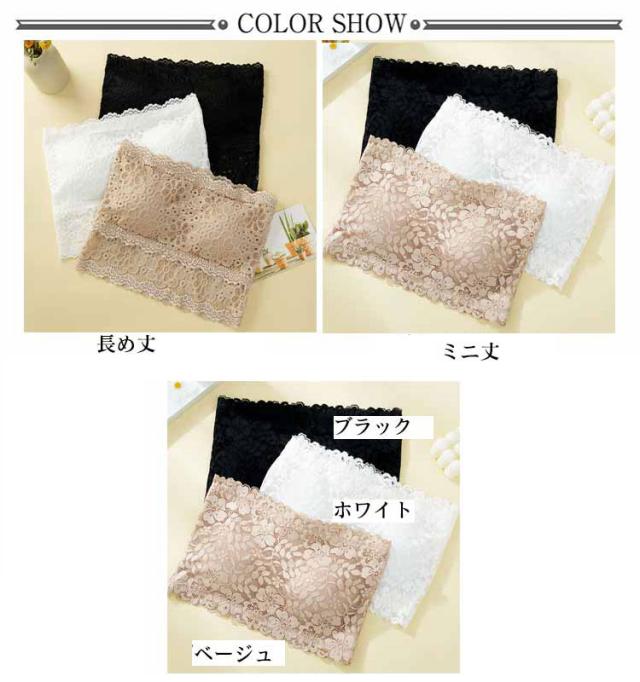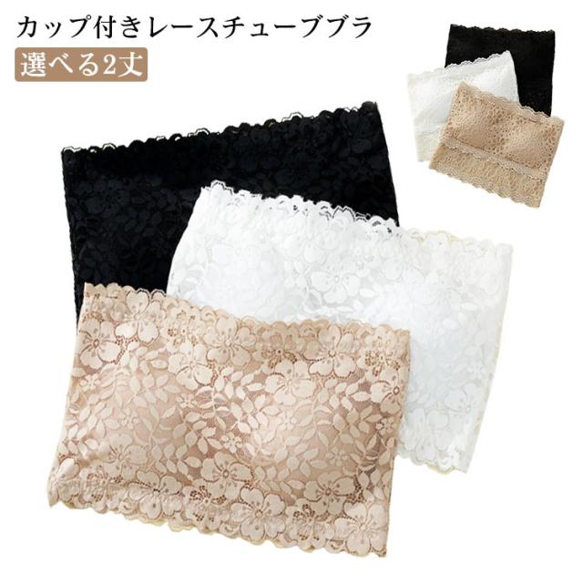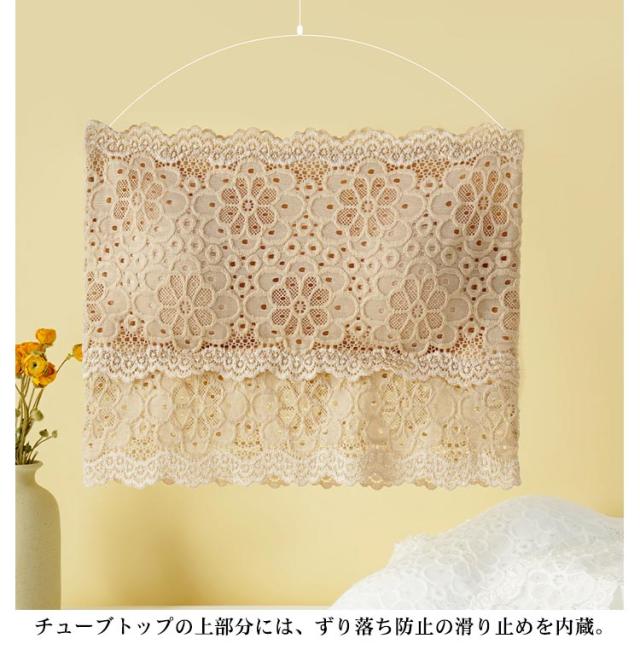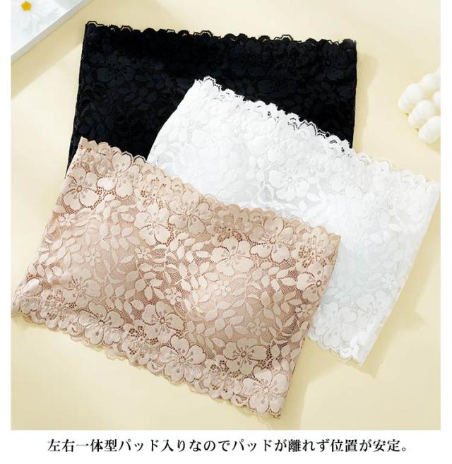 チューブトップ レース カップ付き ノンワイヤー ベアトップ ストラップなし 花柄レース パッド入り 見せブラ 胸チラ防止 オフショルダー インナー 選べる2丈 フリーサイズ 全3色