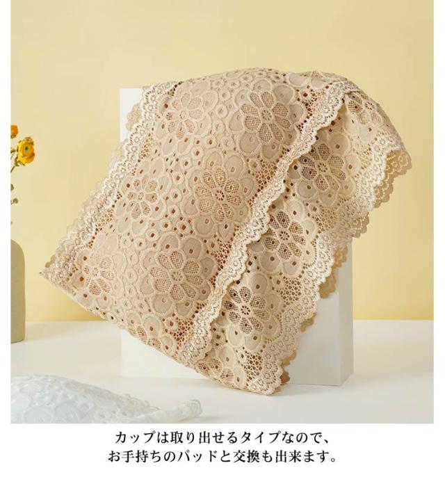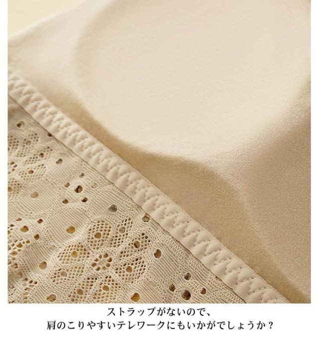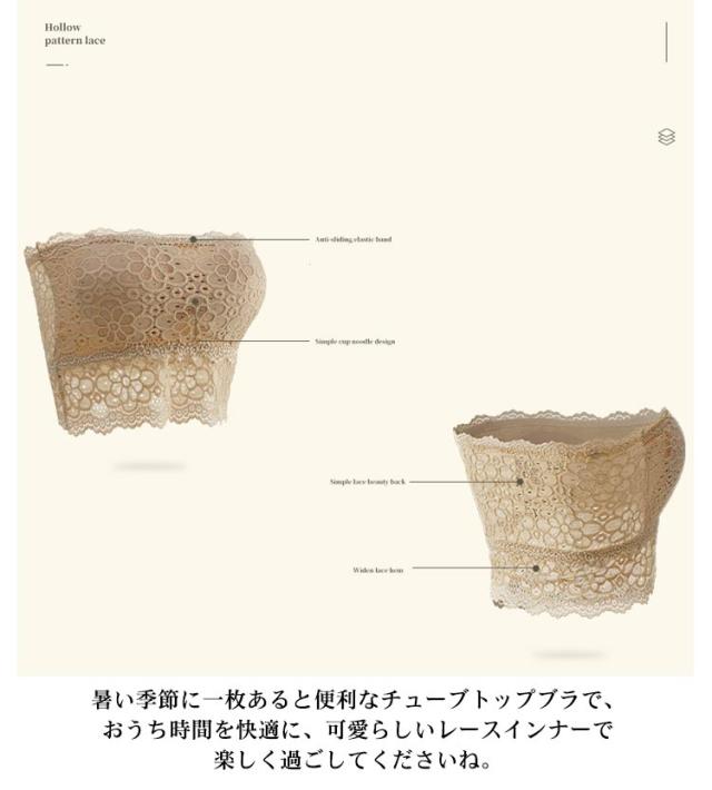 | ・カップ付きレースチューブブラ ・透け感のあるトップスや下着の締め付けが苦手な方に◎ ・バストラインにしっかりとフィットして安定のホールド感。 ・チューブトップの上部分には、ずり落ち防止の滑り止めを内蔵。 ・カップは取り出せるタイプなので、お手持ちのパッドと交換も出来ます。 ・左右一体型パッド入りなのでパッドが離れず位置が安定。 ・ストラップがないので、肩のこりやすいテレワークにもいかがでしょうか? ・暑い季節に一枚あると便利なチューブトップブラで、おうち時間を快適に、可愛らしいレースインナーで楽しく過ごしてくださいね。 | |