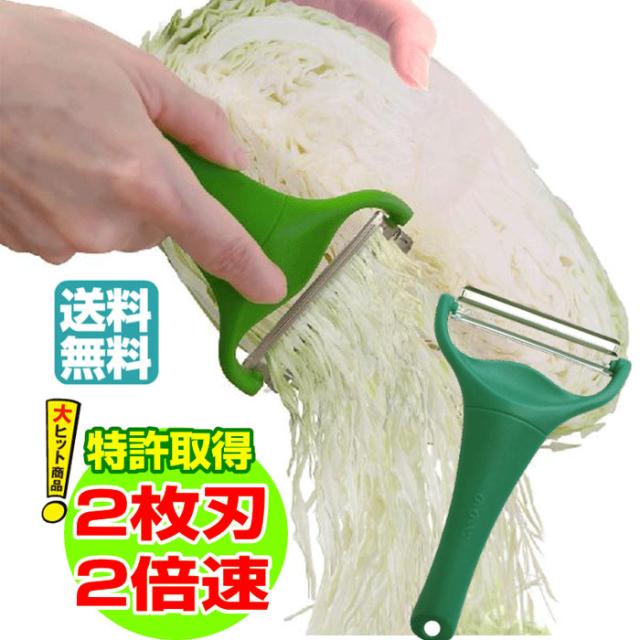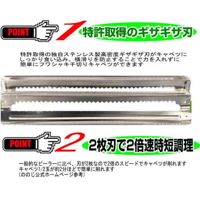 【スピード配送】キャベピィMAX キャベツピーラー ピーラー キャベピー キャベツの千切り CBP-04G ののじ ゆうパケット 追跡可能メール便 特許 2枚刃 千切り ギザギザ刃 時短 調理 キャベツ ふわふわ 料理 指かけ ストレスフリー 安定構造 スライス 薄切 送料無料
