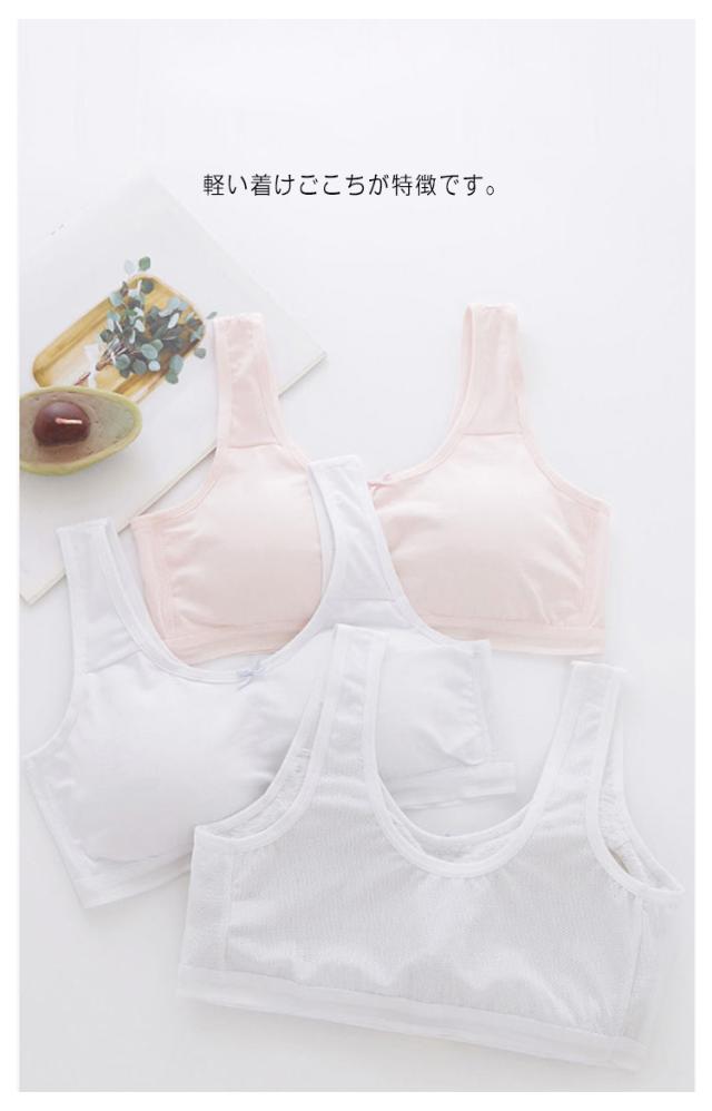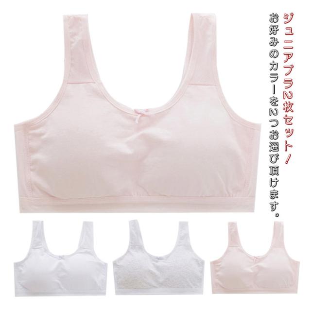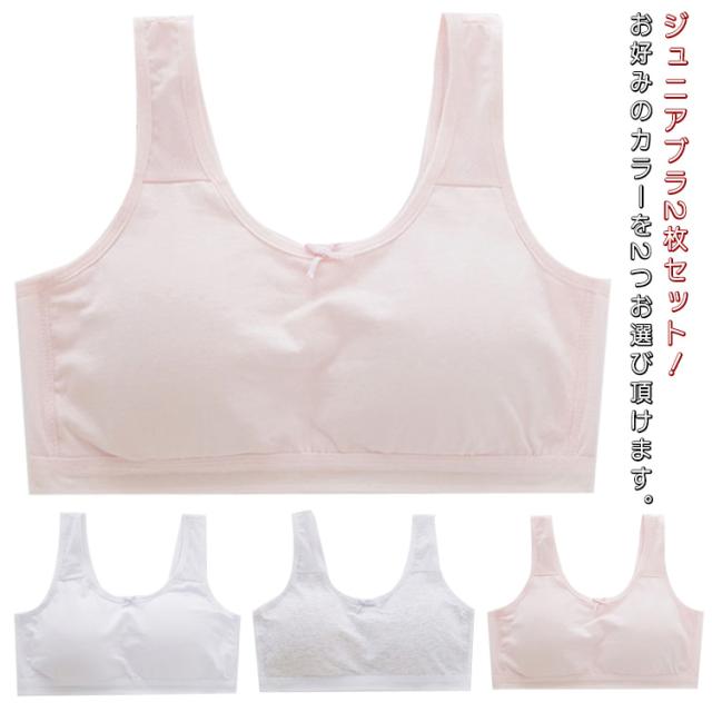 2枚セット スポーツブラ ジュニアブラ インナーブラ 肌着 女の子 コットン 綿 メッシュ 夏 涼しい 薄手 通気性 インナーウェア ノンワイヤー 子供 下着 キッズブラジャー ジュニアブラジャー シンプル 送料無料 オールシーズン