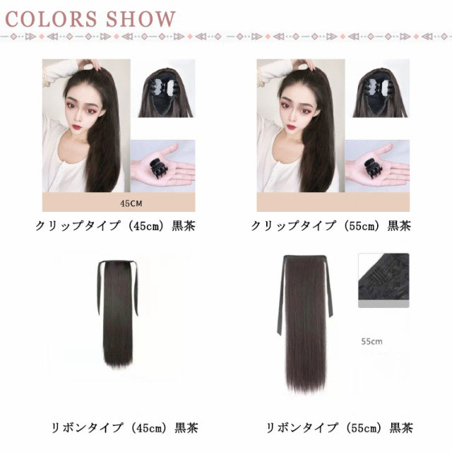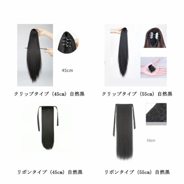 | キレイなロングストレートヘアが手に入る♪ ポニーテールのアレンジにぴったりな部分ウィッグです。 地毛と馴染みやすい高級耐熱マットファイバーのポニーテールウィッグ。 選べる2サイズ×リボンタイプ/グリップタイプ | |