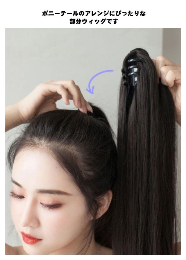 送料無料 ウィッグ ポニーテール ストレート ロング エクステ クリップ リボン つけ毛 キッズ 自然 女性用 ヒップホップ アリアナ風 部分ウィッグ WIG 直毛 仮装 パーティー ダンス コスプレ