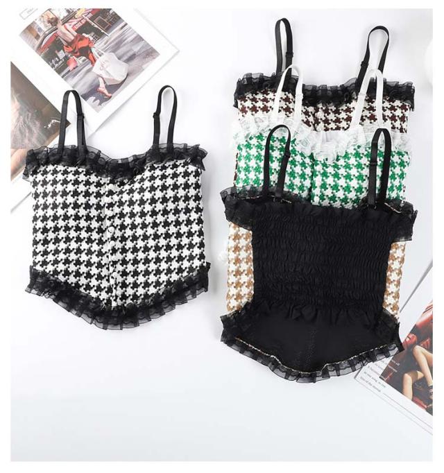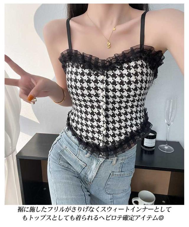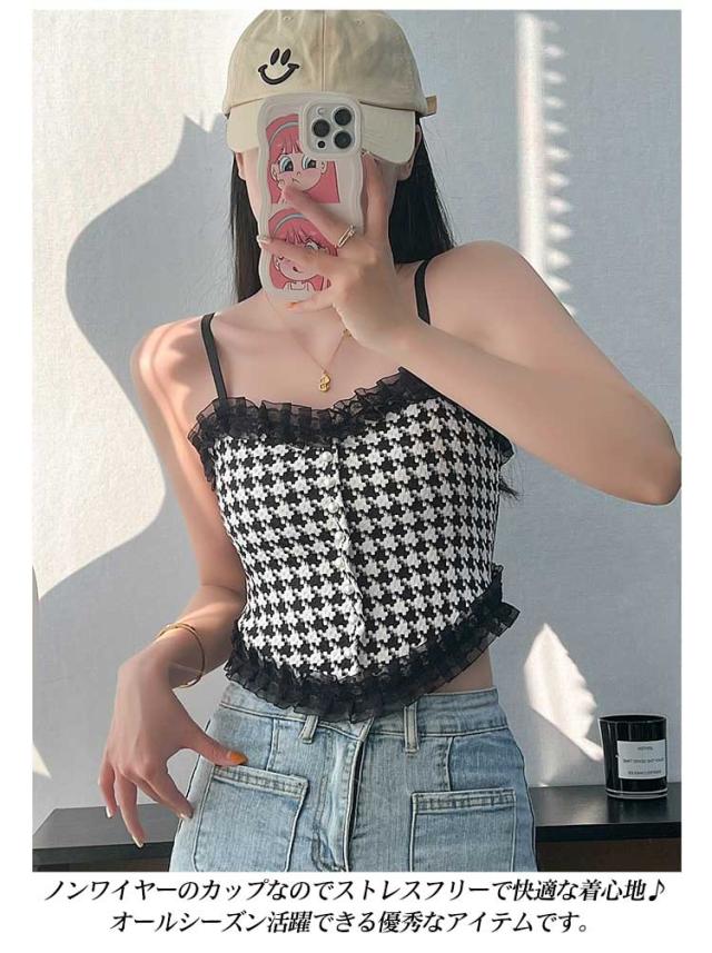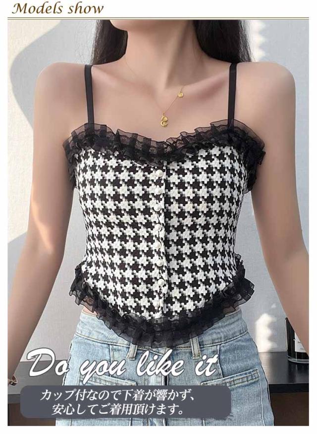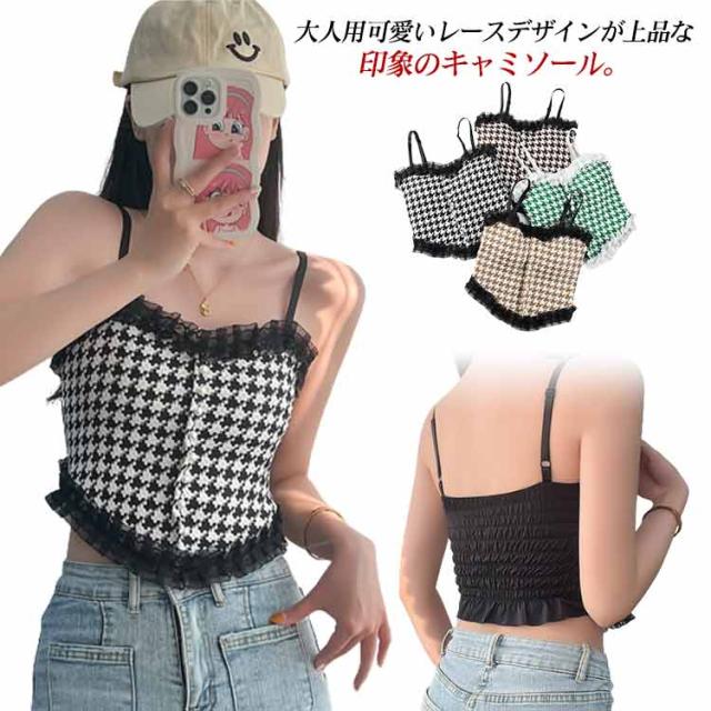 送料無料 キャミソール カップ付 レース インナー レディース ずれない ブラトップ 肌着 シャーリング レース付き ショート丈 キャミ タンクトップ 通気性 チェック柄 ストレッチ 締め付けない ノンワイヤー 春夏 かわいい カップ入り チラ見え 見せブラ セクシー