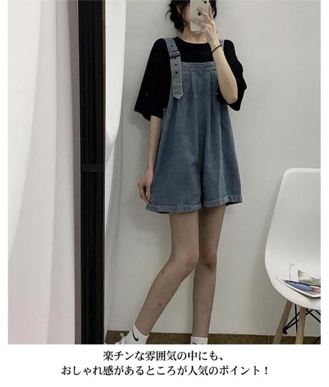 送料無料 サロペット デニム オーバーオール 無地 ショートパンツ デニムサロペット オーバーオール オールインワン ハーフパンツ ゆったり 体型カバー ボトムス ポケット付き レディース 学生 春夏 シンプル 可愛い