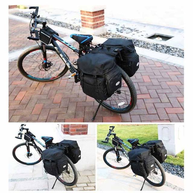 自転車用リアバッグ 自転車用サイドバッグ 自転車用パニエバッグ バイクバッグ 大容量 防水カバー付き 撥水加工 反射材付 フック式&ベルト式 多機能 ロードバイク マウンテンバイク クロスバイク ロングツーリング 無地 迷彩柄 全4色