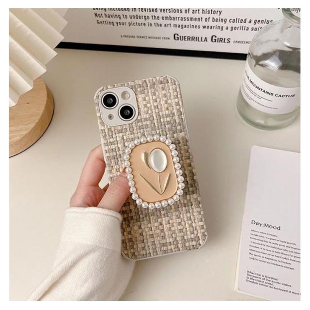 スマホケース SNS人気 花柄 編み風 韓国風 iphone14promax スマホスタンド付き 可愛い iPhone14 お洒落 女の子 iPhone13pro カメラ保護 iPhone12 衝撃吸収 四角保護 TPU素材 iphoneケース アイフォンケース 人気 レディース ガーリー チューリップ 春 夏