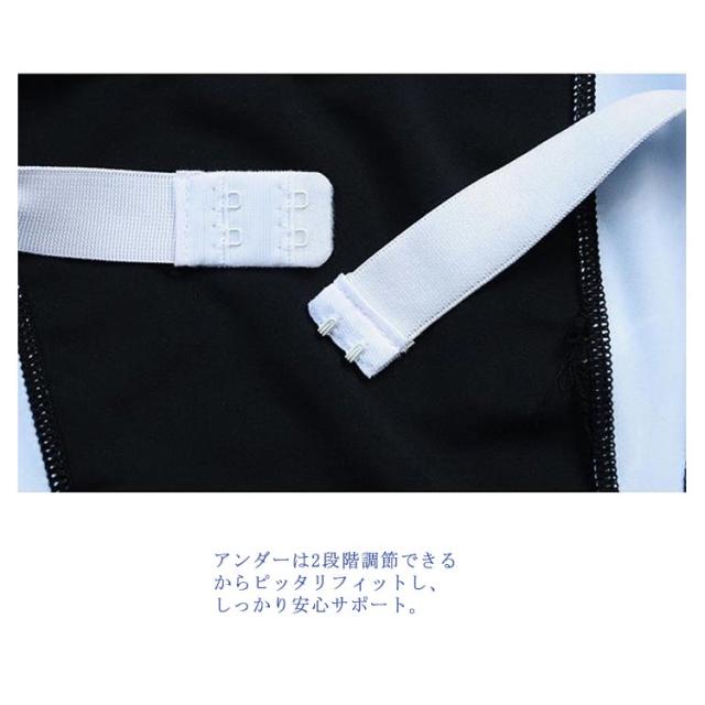 | 大人のスポーティースタイル半袖フィットネス水着上下セット。 露出控えめの半袖タイプでさらっと着こなせるから初めてのフィットネスや肌見せが苦手な水着初心者さんにもぴったり! サイドの切り替えでスラっと細見えも♪Tシャツタイプだから気になるお腹周りをしっかりカバーできる! ブラパッドは取り外し&入替え可能。美しいバストラインを保てます。 アンダーは2段階調節できるからピッタリフィットし、しっかり安心サポート。 | |