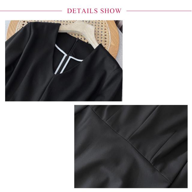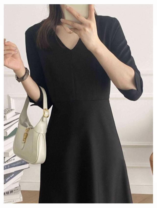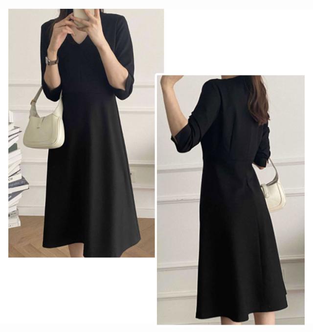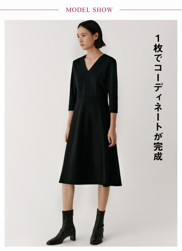 | 落ち着いたデザインのブラックフォーマルワンピース・ドレス 1枚でコーディネートが完成 Vネックがデコルテ部分を綺麗に見せてくれます ウエストのタックフレアのデザインが、上品なフレアシルエットに仕上げ、大人フェミニンな印象に シンプルなデザインなので、冠婚葬祭やパーティー、イベント、お呼ばれなど様々な場面で、オールシーズン活躍できる1着 | |