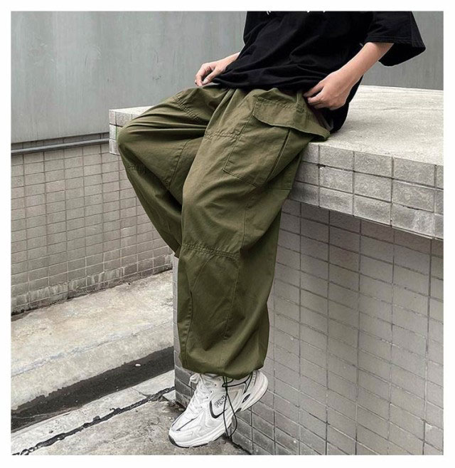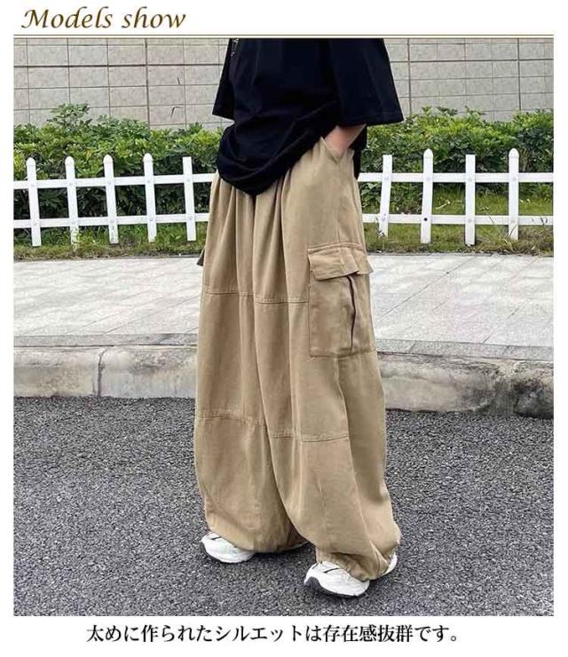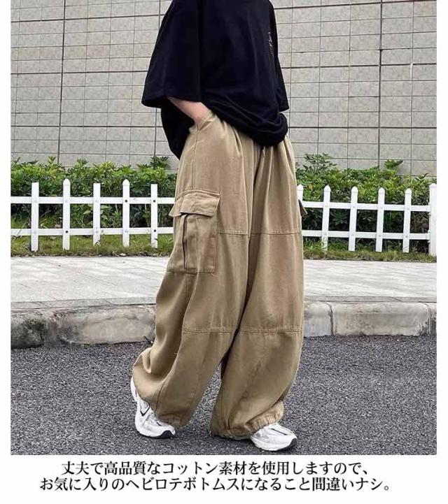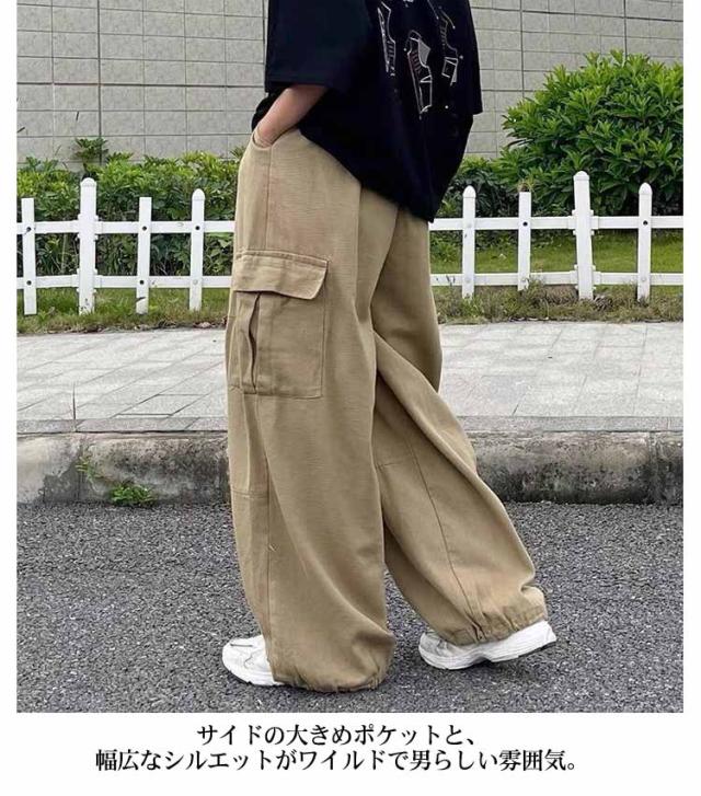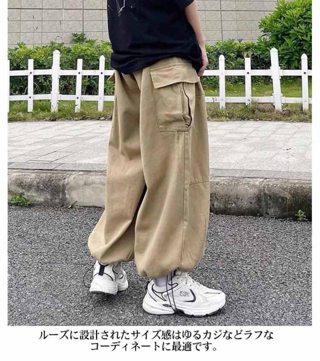 カーゴパンツ メンズ レディース ミリタリーパンツ ゆったり ワイドパンツ 長ズボン サルエルパンツ 送料無料 ワークパンツ 綿 ウエストゴム 大きいサイズ ポケット 春夏秋 春服 無地 太め ボトムス ユニセックス アメカジ ストリート 送料無料
