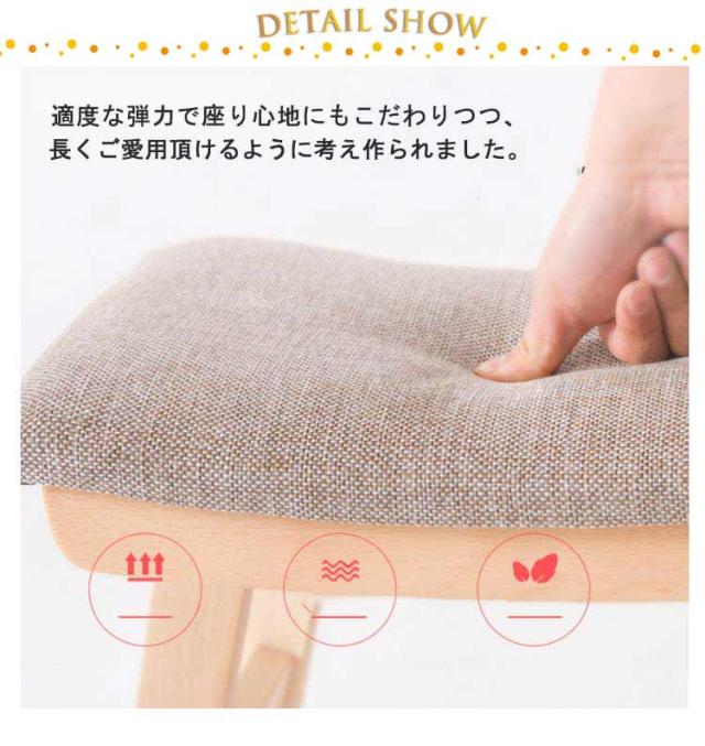 | ナチュラルでかわいい見た目の木製スツール。(完成品)(床保護フェルト付き) 空間を柔らかに演出する主張しすぎない曲線をイメージしたフォルムをデザイン。 通気性と耐久性に優れた綿麻混生地を使用しているため、季節を問わずお使いいただけます。 適度な弾力で座り心地にもこだわりつつ、長くご愛用頂けるように考え作られました。 床を傷つけないように脚には保護フェルトを施しました。 料理中に一息つきたいときや、玄関先で靴をはくとき、 ソファのオットマンとして…。小さくて可愛いけれど、 何かと活躍してくれるんです。 北欧モダン、シンプルナチュラルなどお好きな方におすすめです。長く使っていただける、上質なスツールです。 | |