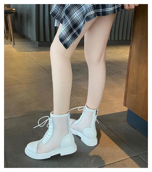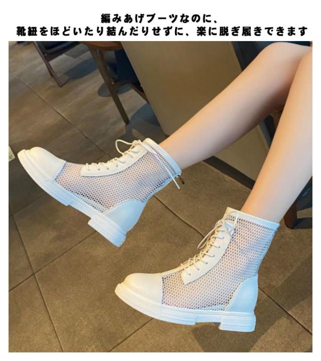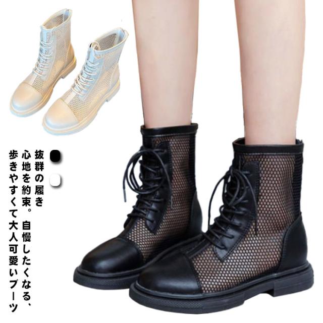 ショート ブーツ レディース 編み上げブーツ 春 夏 秋ブーツ シューズ ショート ブーツ メッシュ サイドジップ ブーツ ショート 履きやすい 疲れない ローヒール レースアップ 厚底 紐靴 ワークブーツ 軽量 幅広 歩きやすい 春ブーツ ジュニア 20代 30代 40代 大人 送料無料