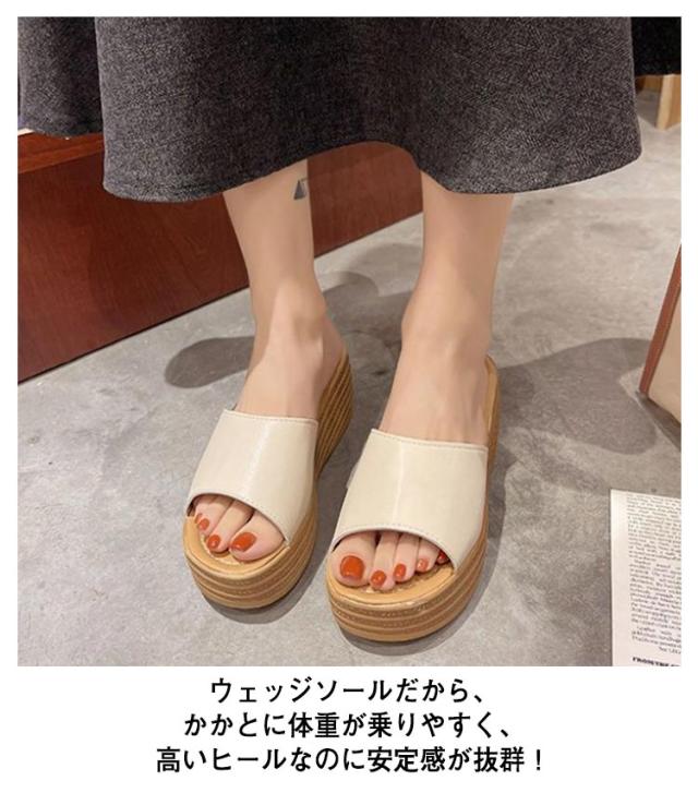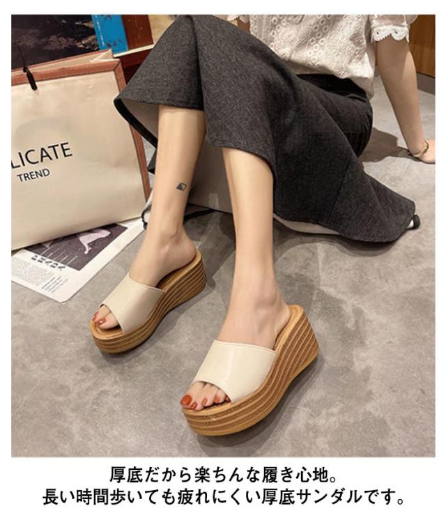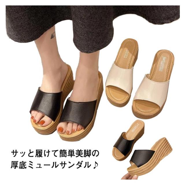 厚底 サンダル ミュール サボサンダル ミュールサンダル 7cm ウェッジソール レディース サンダル厚底 大きいサイズ 靴 ハイヒール 軽量 黒 白 コンフォートサンダル 歩きやすい 旅行