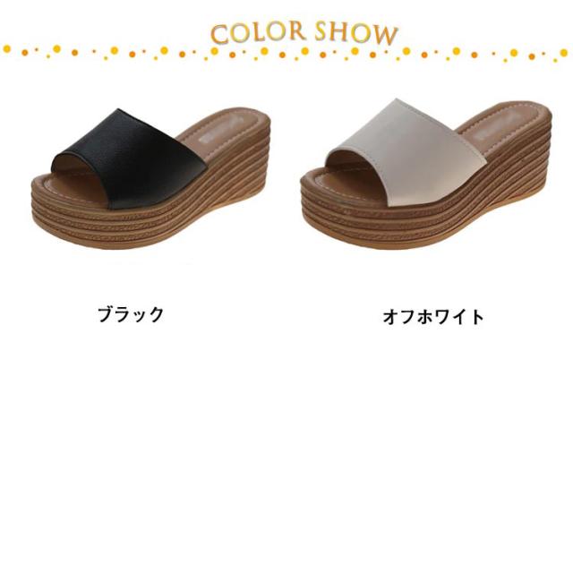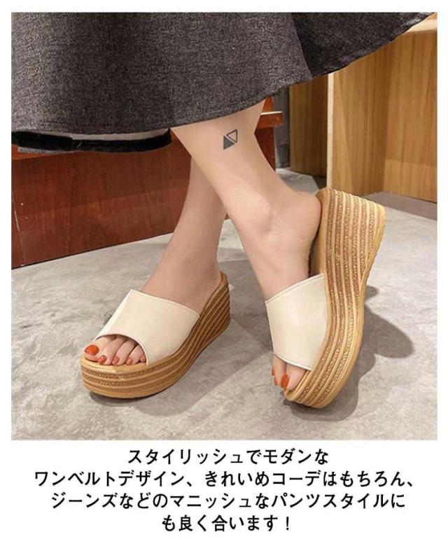 | サッと履けて簡単美脚の厚底ミュールサンダル♪ ウェッジソールだから、かかとに体重が乗りやすく、高いヒールなのに安定感が抜群! スタイリッシュでモダンなワンベルトデザイン、きれいめコーデはもちろん、ジーンズなどのマニッシュなパンツスタイルにも良く合います! 厚底だから楽ちんな履き心地。長い時間歩いても疲れにくい厚底サンダルです。 | |