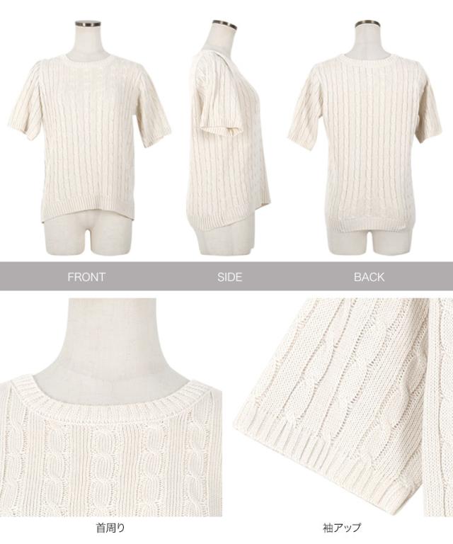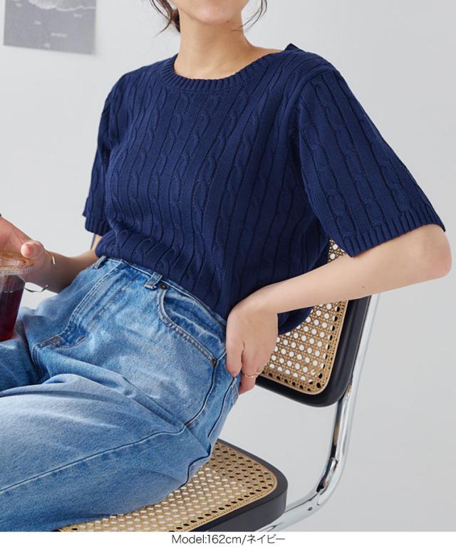 春新作 ハーフスリーブケーブルニットトップス C6668 入荷済 レディース ハーフスリーブ 半袖 5分袖 ケーブルニット ケーブル ニット サマーニット スプリングニット 春 夏 秋 トップス セーター クルーネック 30代