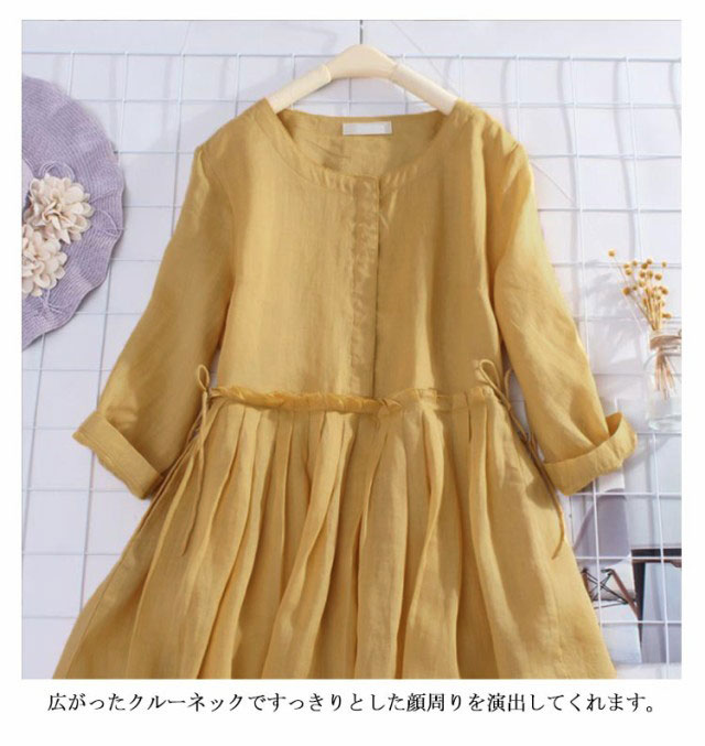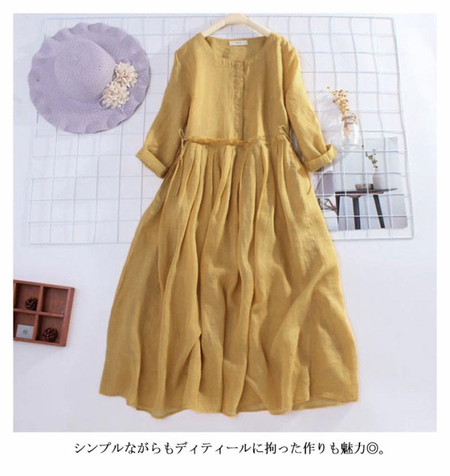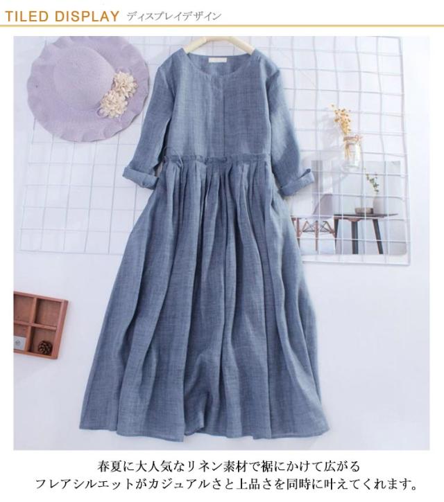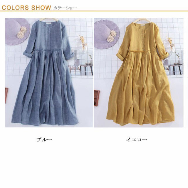 リネンワンピース 森ガールワンピース 送料無料 綿麻ワンピース レディース ワンピース ロングワンピース ロング丈 7分袖 シンプル 体型カバー クルーネック ゆったり 無地 きれいめ 春 夏 秋 カジュアル ナチュラル 柔らかい プレゼント 30代 40代 50代