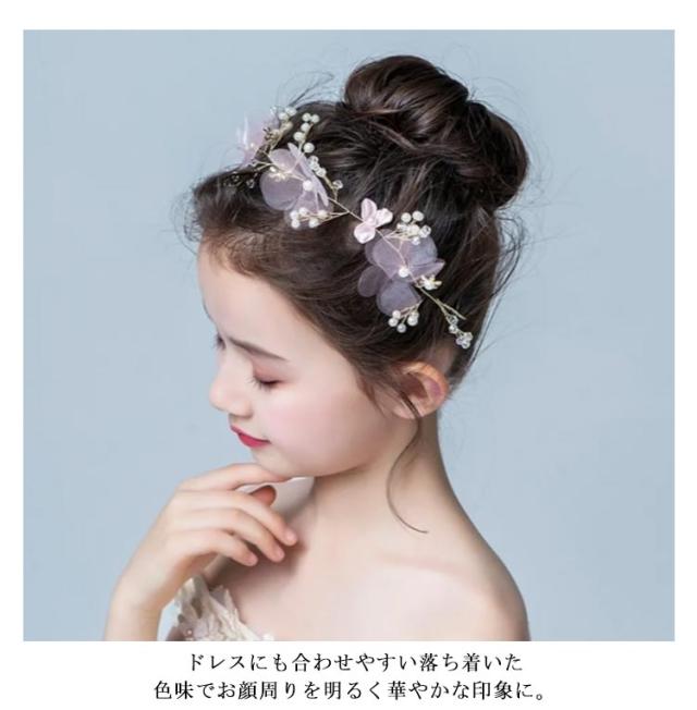 送料無料 ヘアアクセサリー 子供 レディース ピアノ発表会 発表会 髪飾り 花 ヘッドドレス ワイヤー 女の子 キッズ ゴールド 淡い パープル クリスタルビーズ ラインストーン ティアラ カチューシャ 結婚式 ウエディング 可愛い 写真撮影