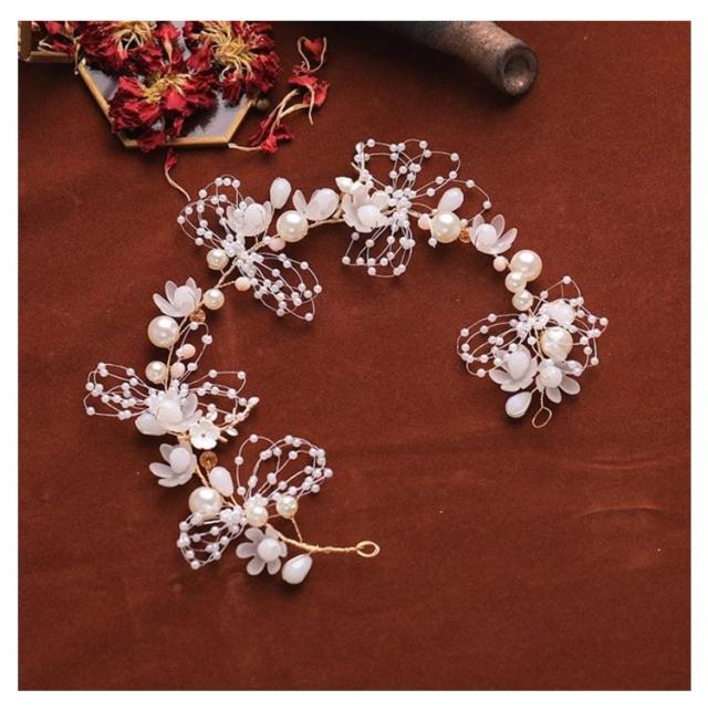 | 花とリーフをモチーフにした大きなパールビーズとラインストーンの組み合わせがおしゃれでクラシカルな手作りヘアアクセサリー。 ドレスにも合わせやすい落ち着いた色味でお顔周りを明るく華やかな印象に。 ワイヤー仕様の為、ティアラ・カチューシャとしてもご使用いただけます。 つけるだけで簡単にドレスアップできます。 ピアノ発表会など、遠くからでも目に留まる存在感のあるヘアアクセサリー。 | |