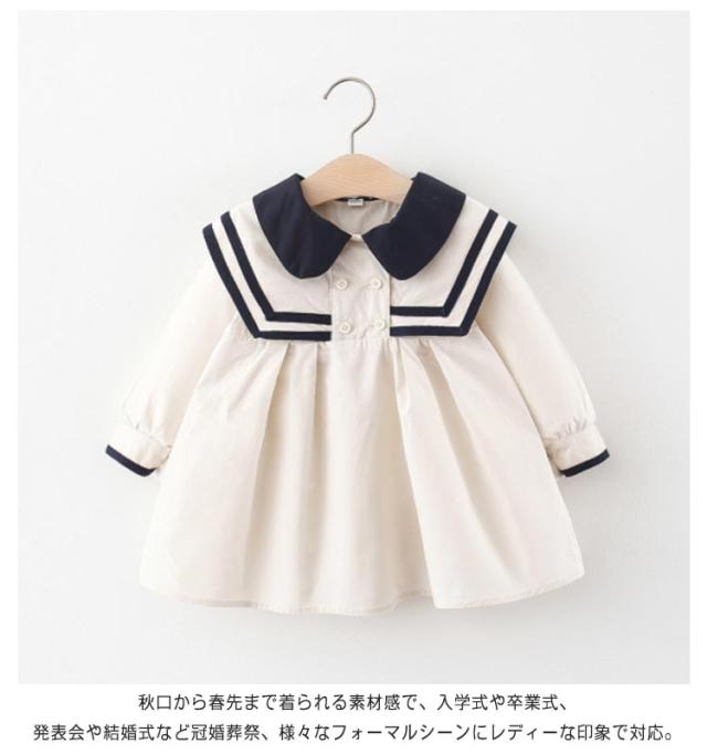 ワンピース 長袖 キッズ ベビー 子供服 フォーマル ドレス 送料無料 女の子 春秋 セーラー風 セーラー服風 入学式 ガールズ 可愛い 女児 受験 面接 入園式 ドレス 卒業式 発表会 結婚式 お祝い