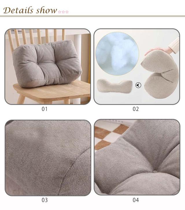 | 長時間の運転やデスクワークを快適に!腰クッション 体と椅子の隙間にぴったりフィットし、やさしく腰を支えます。 体圧を分散することで長時間座っていても疲れにくく、座り姿勢を快適にサポートしてくれます。 綿麻の素材で通気性がいい、肌触りも優しいてす。ロングシーズンで大活躍! 長時間同じ姿勢を取りがちな長距離の運転や、オフィスワークにおすすめです。 腰当て以外にも腰枕や足枕としての使い方も可能です。 | |