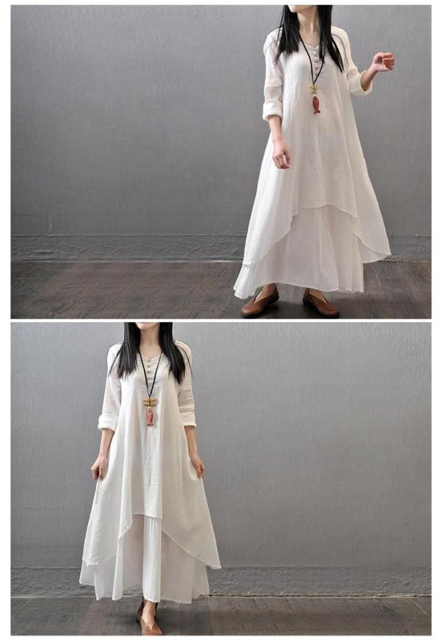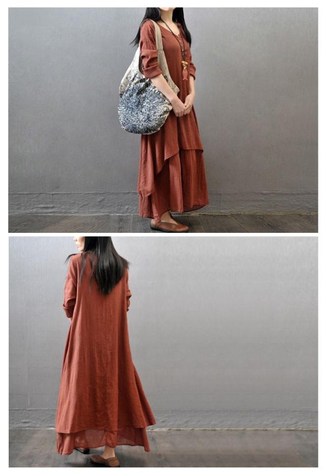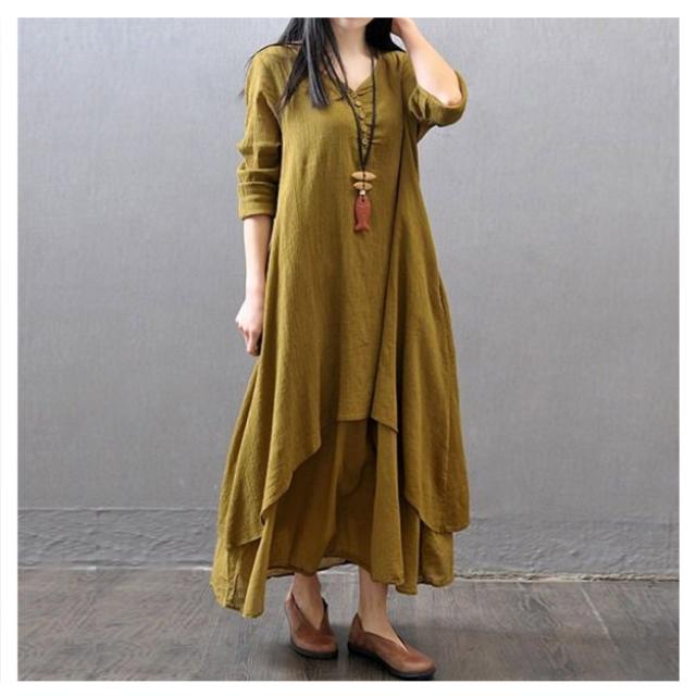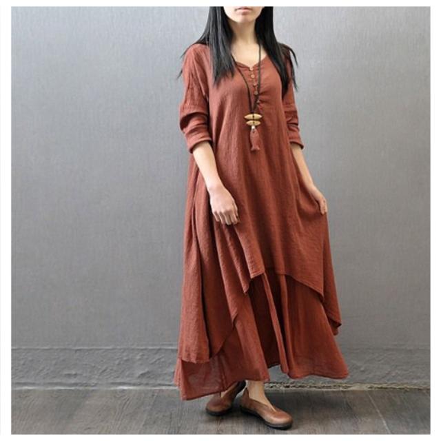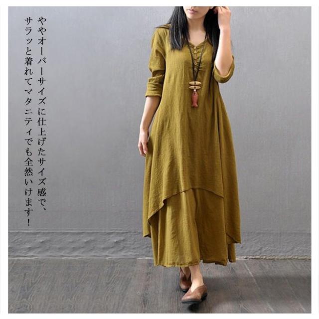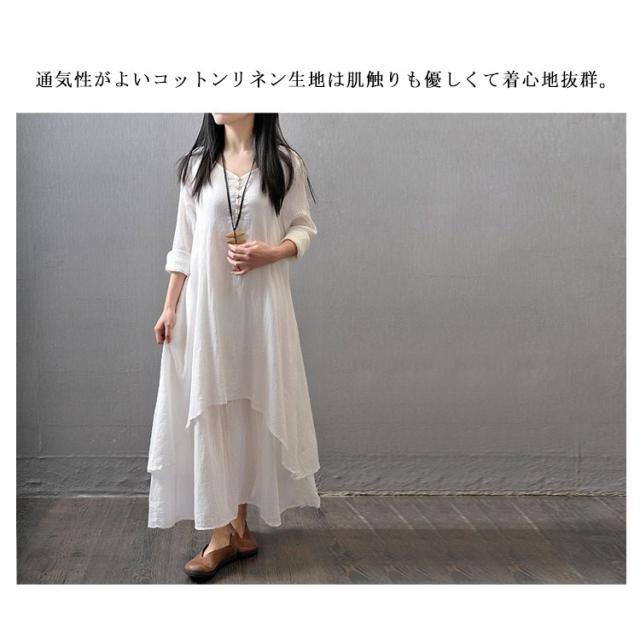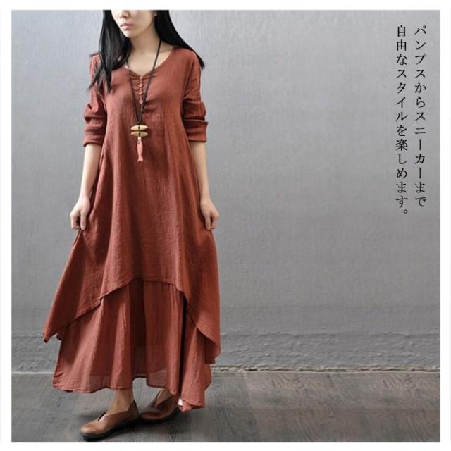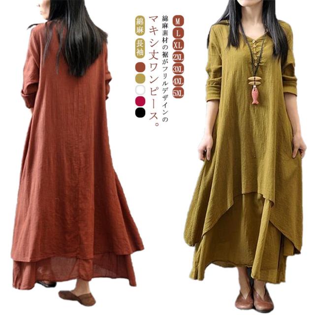 送料無料 綿麻ワンピース ロングワンピース ワンピース マキシ レディース 綿麻 夏 秋 長袖 無地 リネンワンイース インナー シンプル aライン ロングワンピ カジュアル ゆったり 体型カバー ナチュラル 着痩せ 部屋着 ルームウェア マタニティー