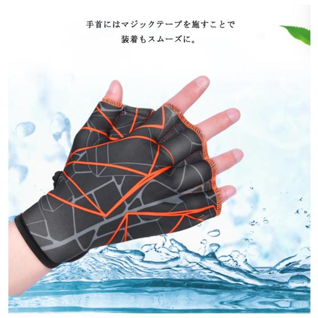 | 手の保護や推進力アップに♪ 水泳、サーフィン、スイミング等に最適のパドルグローブ。 手が水かきになり、泳ぐのに楽チン。 手首にはマジックテープを施すことで装着もスムーズに。 適度な厚みでクッション性もありますので、手の保護にもなります。 | |