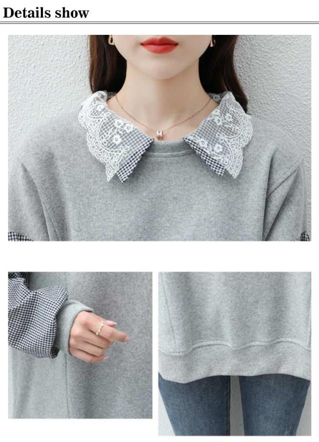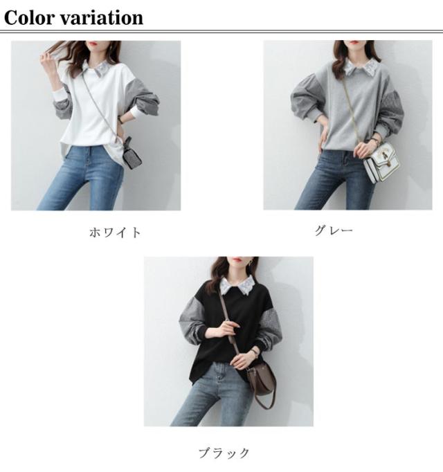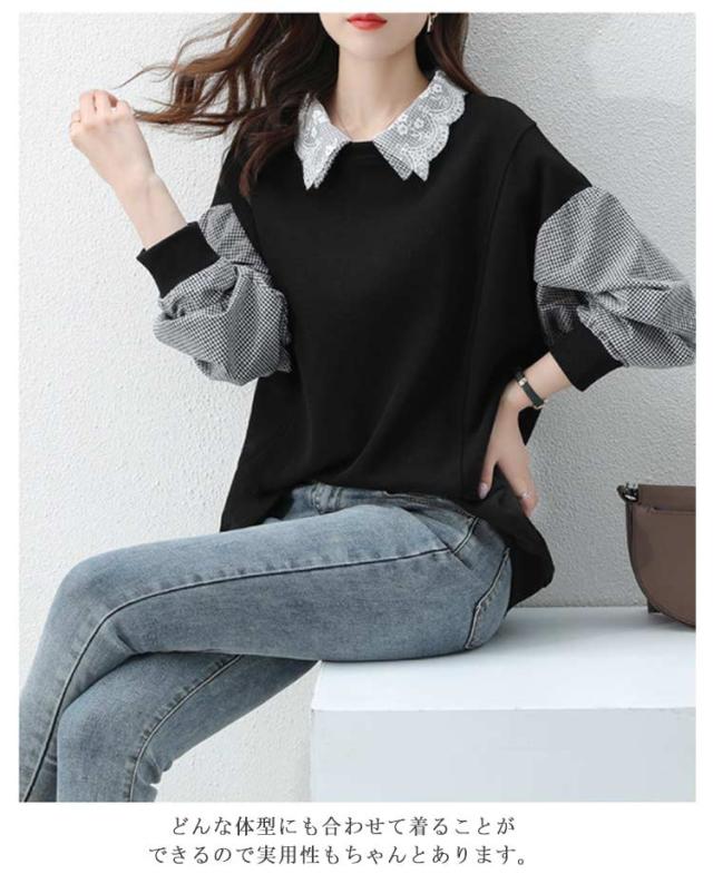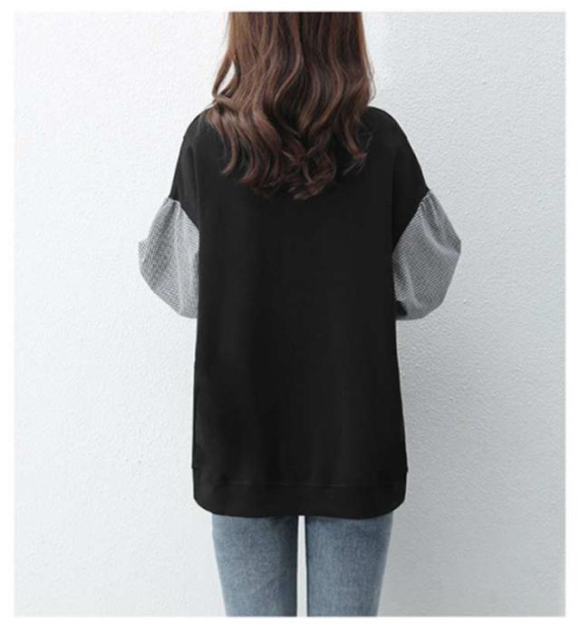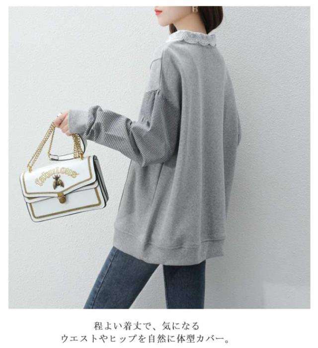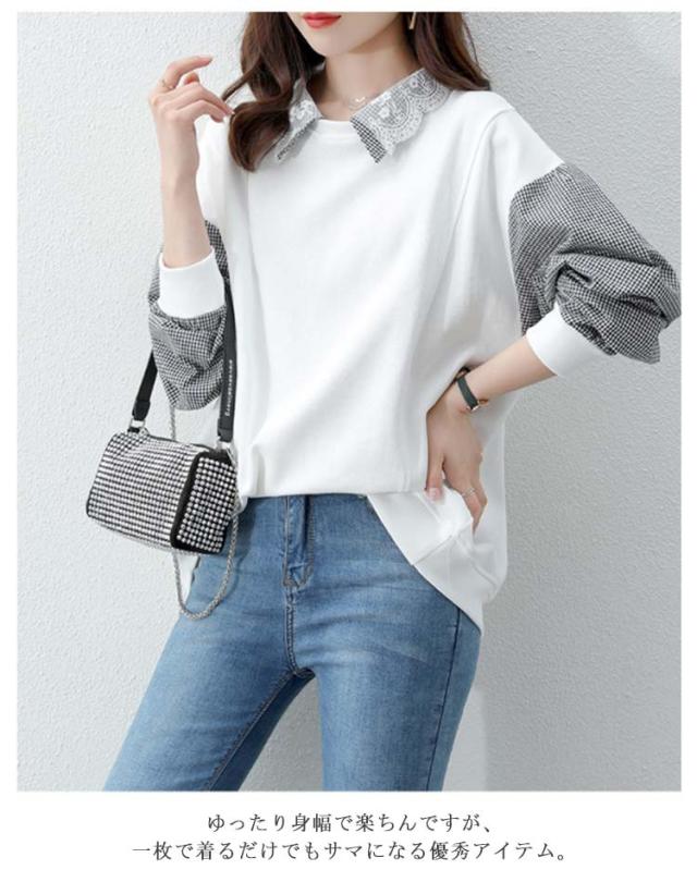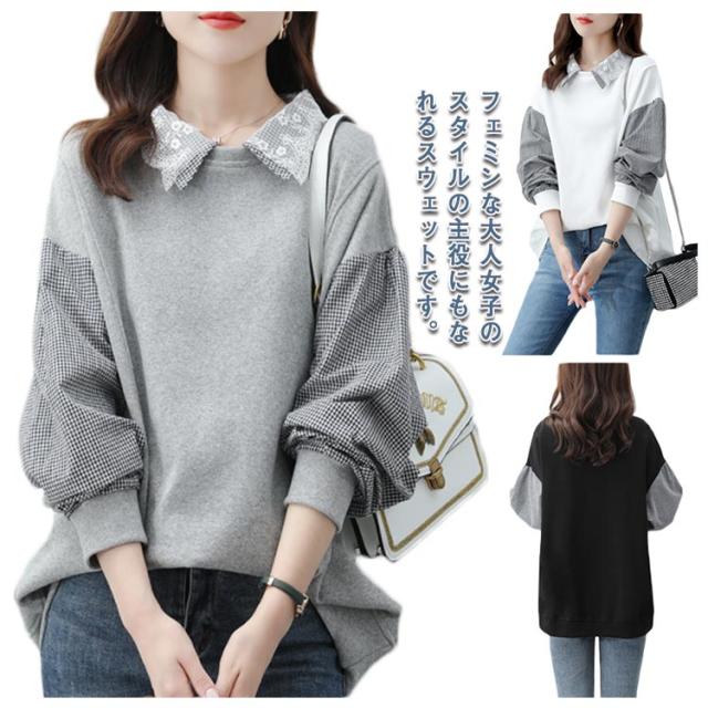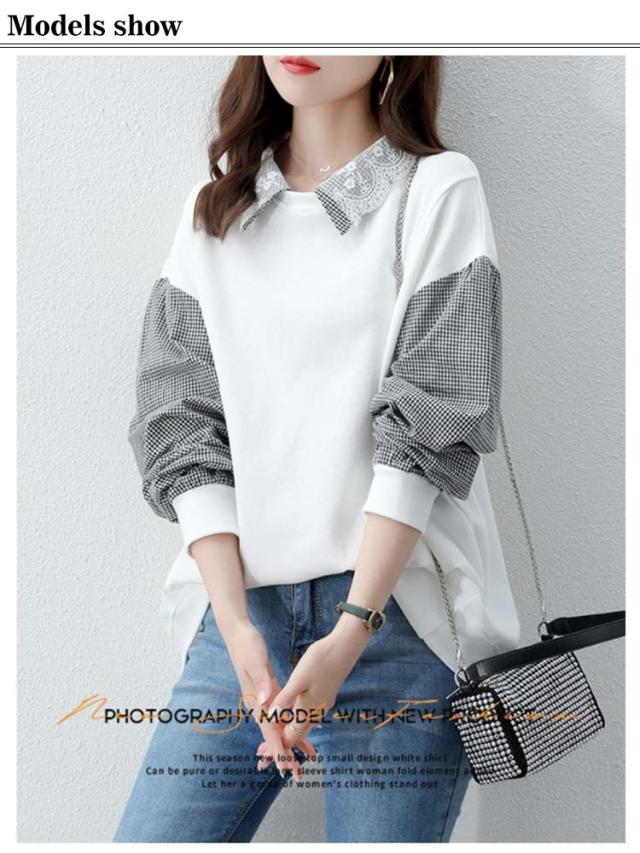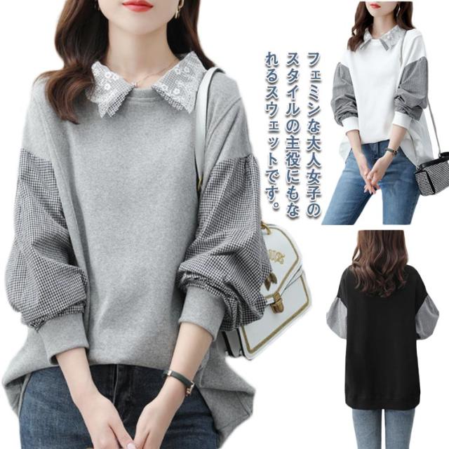 パーカー レディース トレーナー トップス スウェット 長袖 重ね着風 ドッキング チェック柄 体型カバー 可愛い カジュアル 通勤 通学 春秋 大きいサイズ ゆったり 送料無料