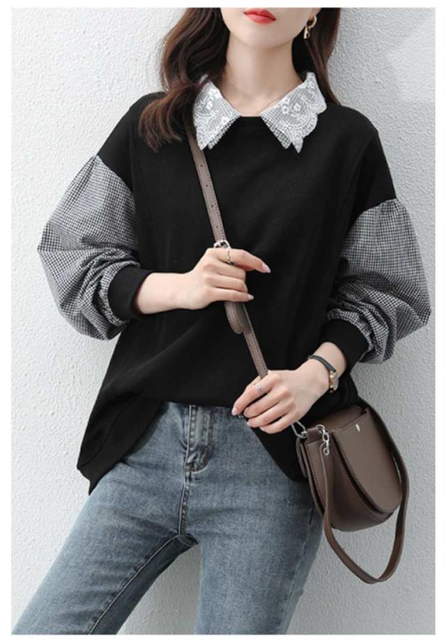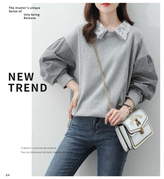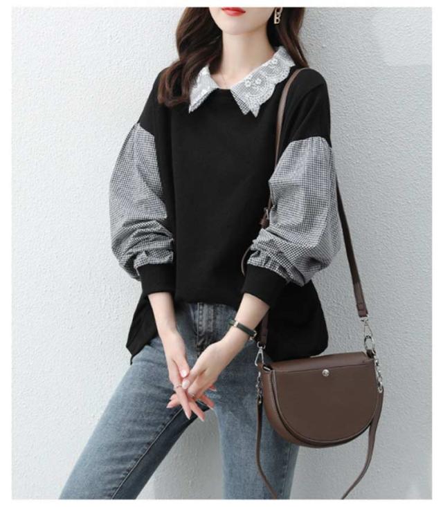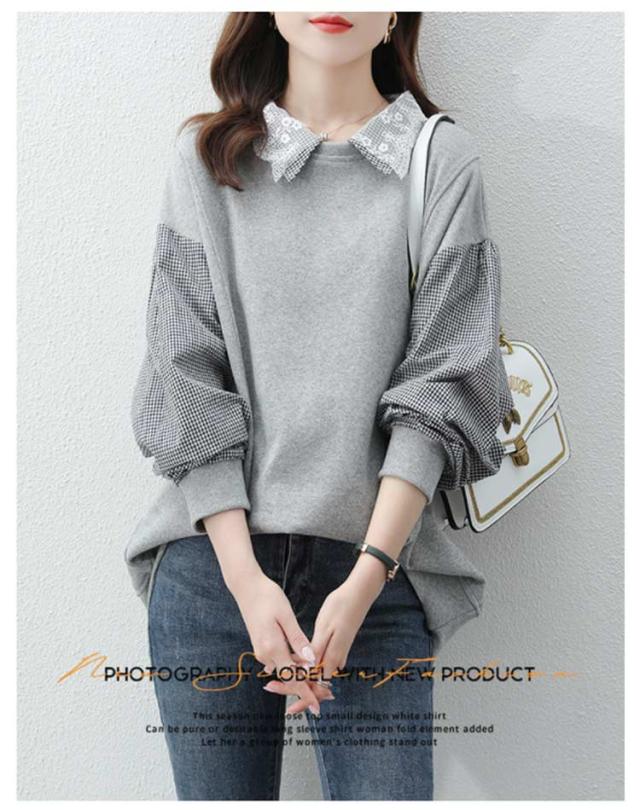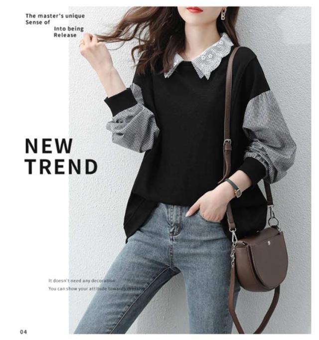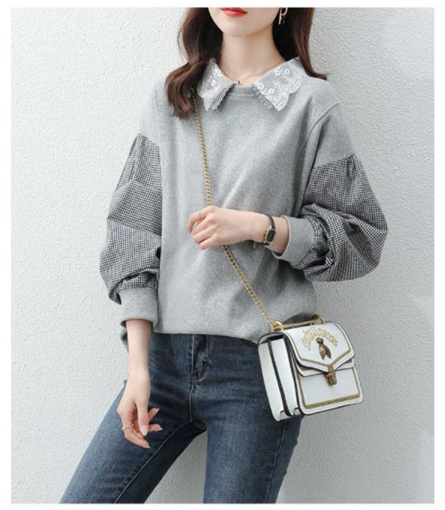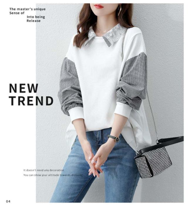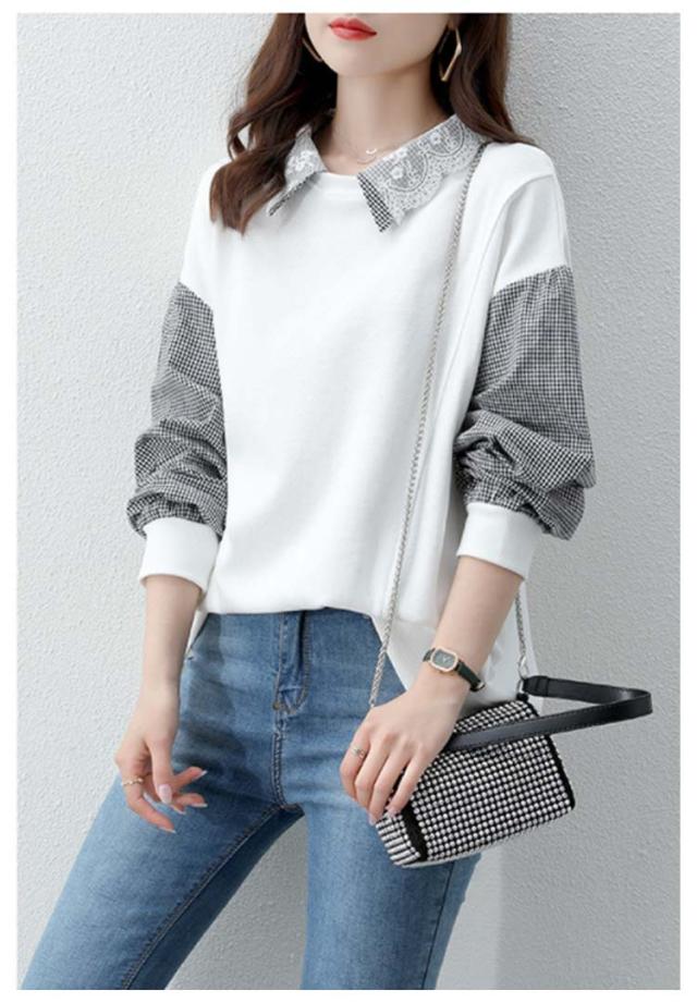 パーカー レディース トレーナー トップス スウェット 長袖 重ね着風 ドッキング チェック柄 体型カバー 可愛い カジュアル 通勤 通学 春秋 大きいサイズ ゆったり 送料無料