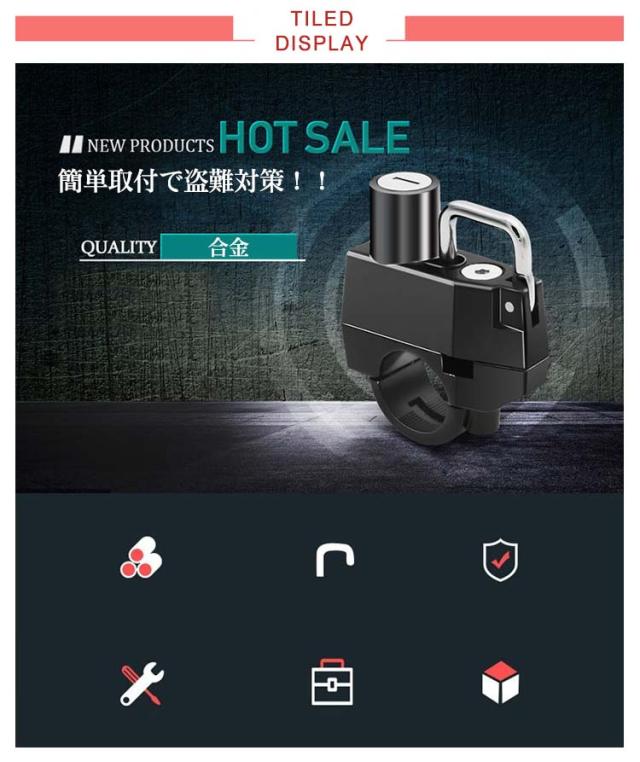 | ・バイクから離れるときに簡単にヘルメットをロック。 ・簡単取付で盗難対策!! ・高品質の合金材料で作られて、強くて、精密で、劣化にも強いです。 ・ヘルメットホルダーが無いもしくは使いづらい車両に装着すると利便性が向上します。 | |