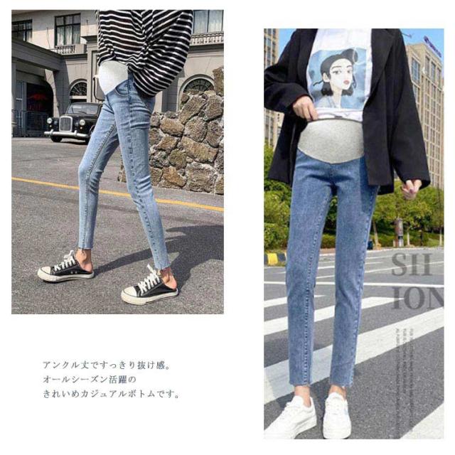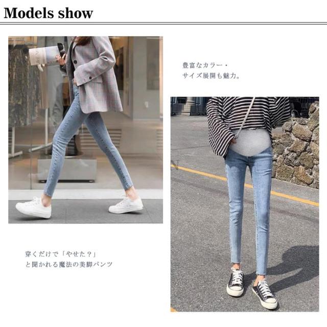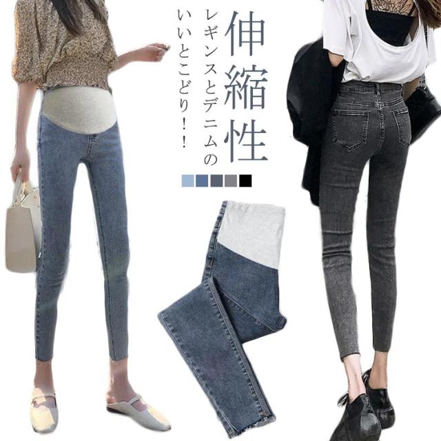 レギンスパンツ マタニティ パンツ デニムスキニー デニムパンツ スリム レギパン ストレッチ 伸縮性 アジャスター 大きいサイズ マタニティパンツ 動きやすい マタニティウェア ズボン 産前 産後 脚長 美脚 秋冬 妊婦服 黒 グレー ブルー