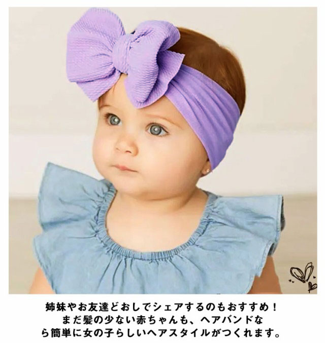| 頭を締め付けないやわらか素材!赤ちゃん用のかわいいヘアバンドです。 後部はゴム製になっていて伸縮するため、快適につけられます。伸縮性抜群で締め付けずに快適フィット! 幅広なバンドで小さな頭にもしっかりフィットしてずれにくい! バラエティー豊かな5カラーで、お洋服とのコーディネートも楽しめます♪ 姉妹やお友達どおしでシェアするのもおすすめ!まだ髪の少ない赤ちゃんも、ヘアバンドなら簡単に女の子らしいヘアスタイルがつくれます。 | |