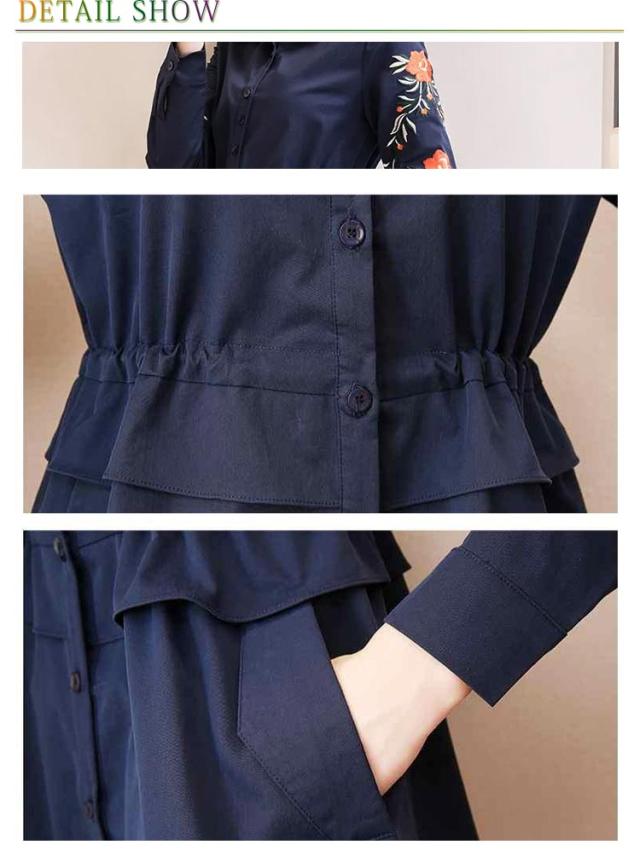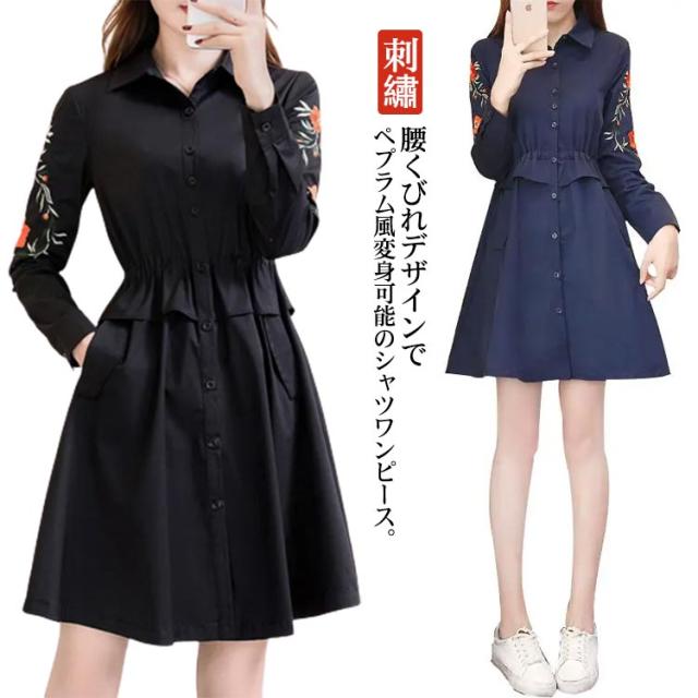 シャツワンピース ロングシャツ レディース ワンピース ロング丈 アウター シャツ 羽織り ペプラム 春 秋 刺? ゆったり 大きいサイズ おしゃれ 体型カバー M L XL 2XL 3XL 4XL 5XL