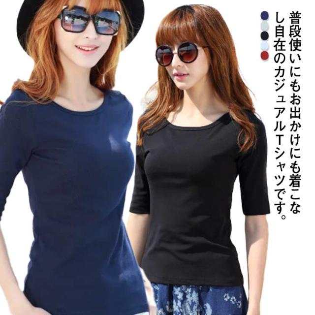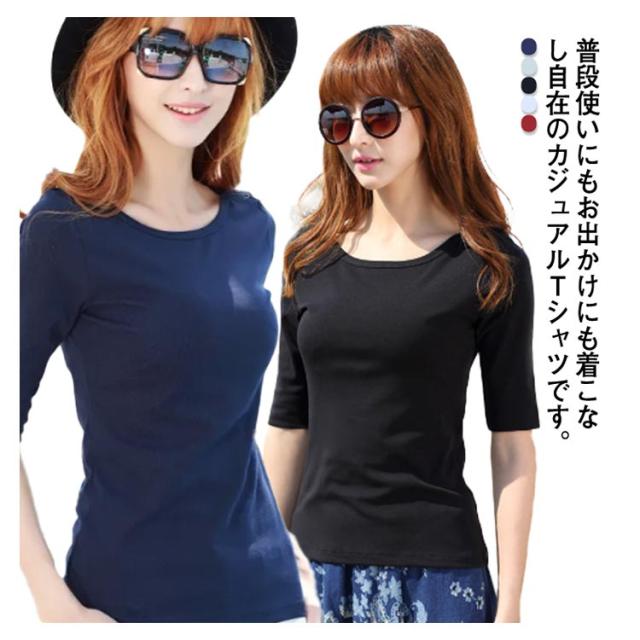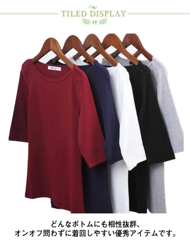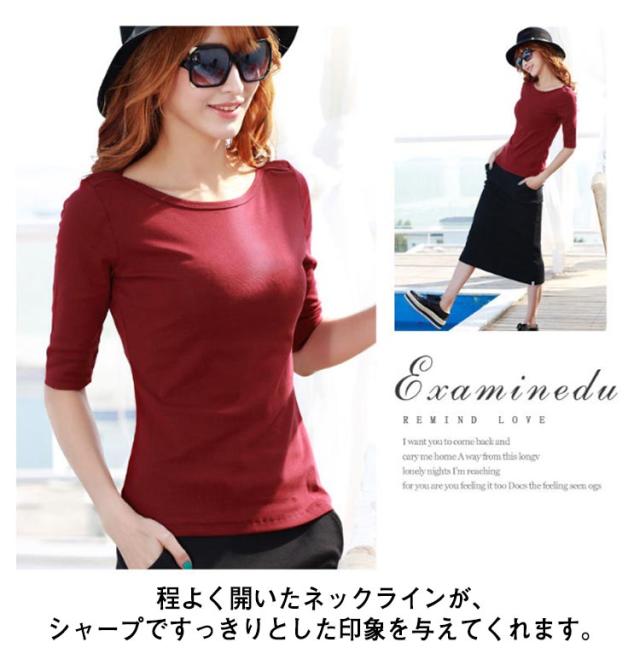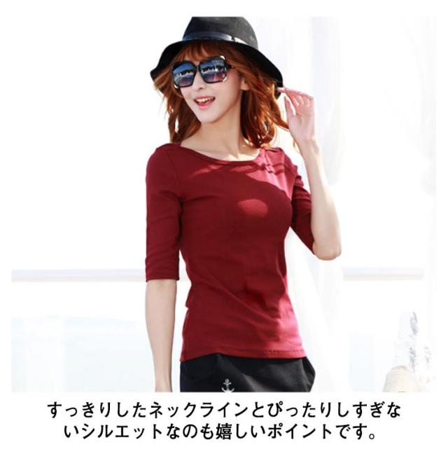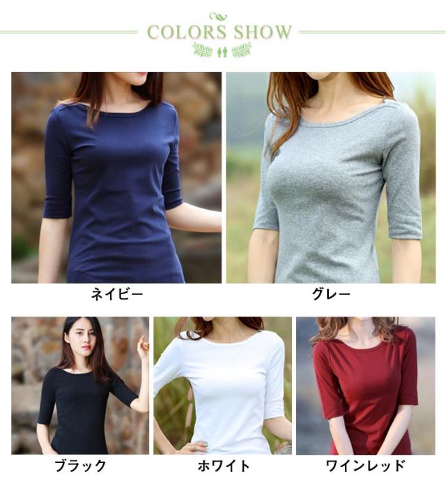 送料無料 Tシャツ ボートネック レディース 5分袖 トップス カットソー 無地 ロンT スーツ 丸首 シンプル ロング インナー ティーシャツ ロングtシャツ 半袖tシャツ 重ね着 レイヤード ネイビー グレー ブラック ホワイト ワインレッド