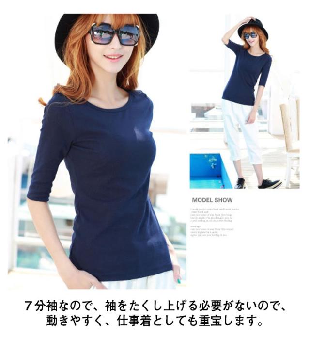 | 普段使いにもお出かけにも着こなし自在のカジュアルTシャツです。 7分袖なので、袖をたくし上げる必要がないので、動きやすく、仕事着としても重宝します。 すっきりしたネックラインとぴったりしすぎないシルエットなのも嬉しいポイントです。 程よく開いたネックラインが、シャープですっきりとした印象を与えてくれます。 柔らかくなじむストレッチ素材。体のラインを気にすることなくスカートにもパンツにも着回し抜群。 どんなボトムにも相性抜群、オンオフ問わずに着回しやすい優秀アイテムです。 | |