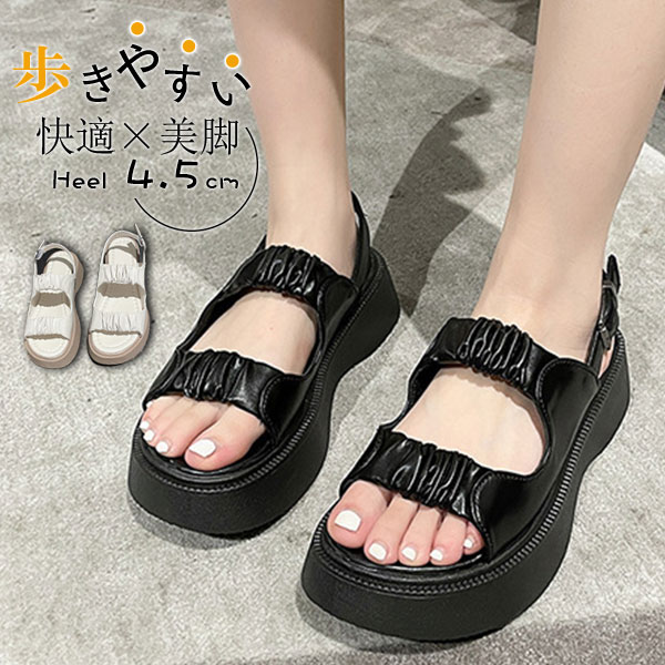 ■キーワード:痛くない 歩きやすい 厚底スポーツサンダル スポサン 黒 夏 プラットフォーム テープベルト カジュアル レディース 夏新作 厚底スポーツサンダル