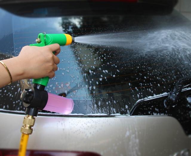 一般的なノズルと組み合わせて洗車中に泡を発生させ、車の表面の洗浄洗剤を取り除く手間を省きます。