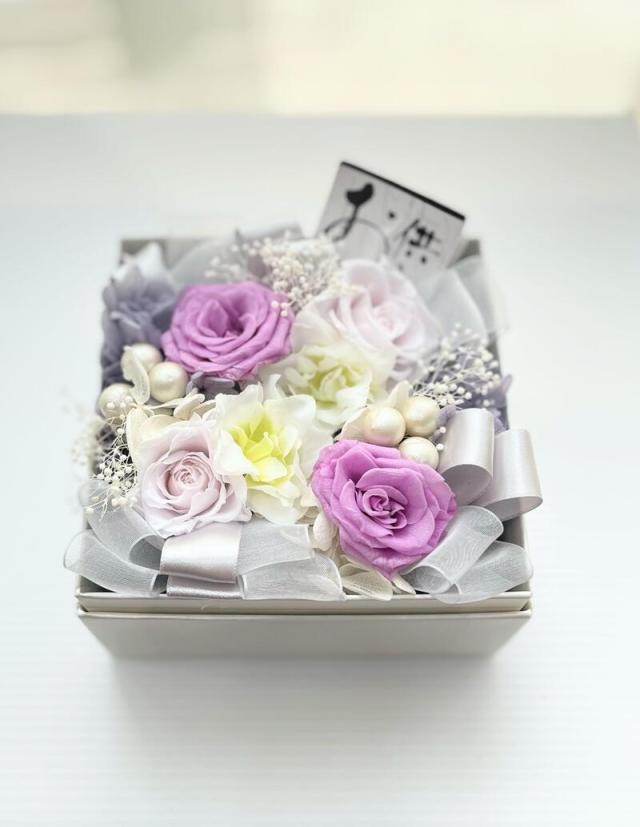 仏花ボックスアレンジ 大人のスウィートライラック 仏花 御供えの花 プリザーブドフラワー アーティフィシャルフラワー メモリアルフラワー お彼岸 法事 仏壇 お供え お盆 お彼岸 敬老の日 サイズ:幅約12.5cm×高さ約10cm Lulus-1820 Lulus ルルズ