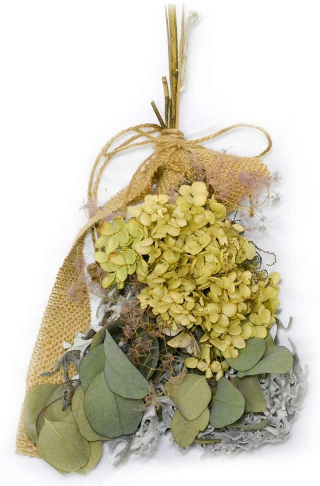 自然素材で作ったスワッグです。 アナベル、スモークツリー、ユーカリポポラス、ダスティミラー、ミモザの葉などを使用しています。 写真は半ドライの状態です。 ドライの状態でお届けしますが、さらに時間を経過する事で変化していきます。 配送中、自然素材ですので花や葉が落ちる事がございます。 理解の程よろしくお願いします。 サイズ:約30cm