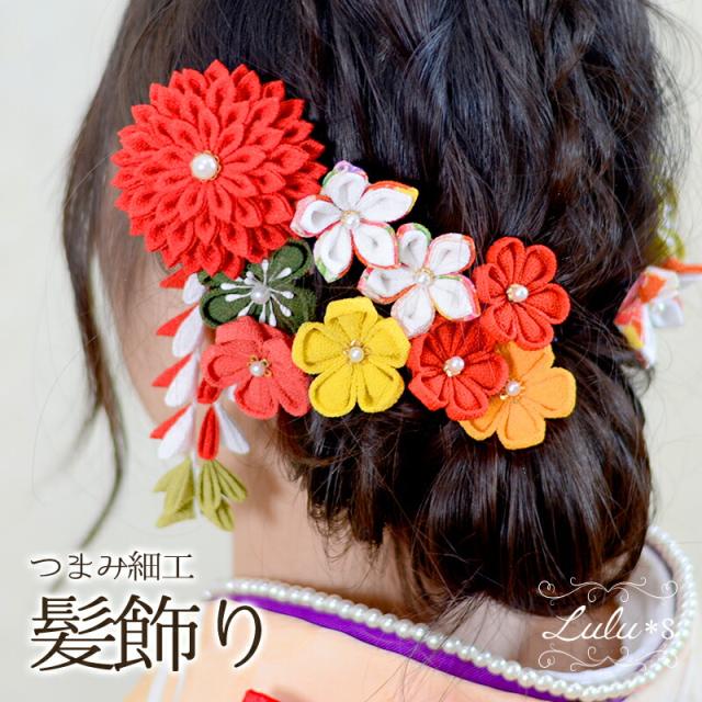 ちりめんつまみ細工 〜紅〜 成人式 結婚式 和装 ヘッドドレス 卒業式 髪飾り 美つまみ細工 卒業式 髪飾り ウェディング ブライダル 花嫁 ヘアアクセサリー アクセサリー Lulu's-2469 Lulu*s ルルス?