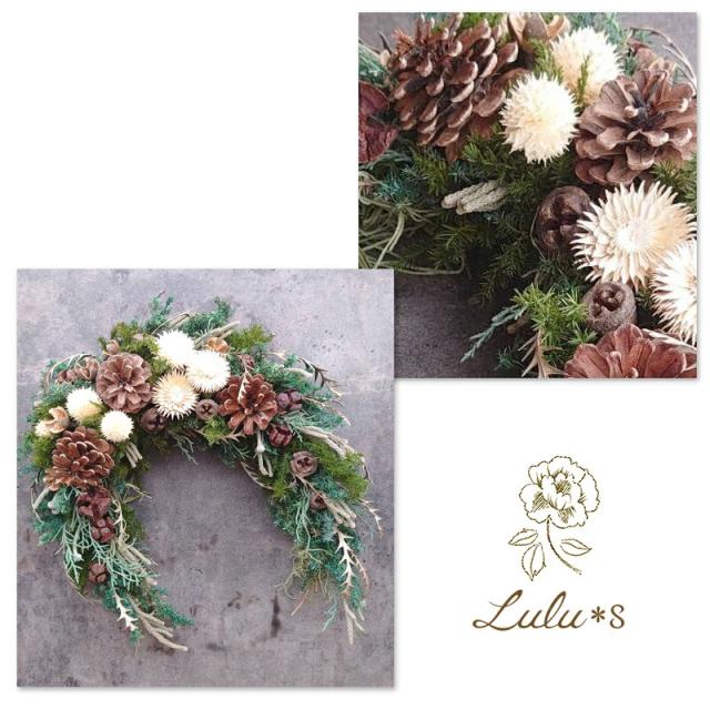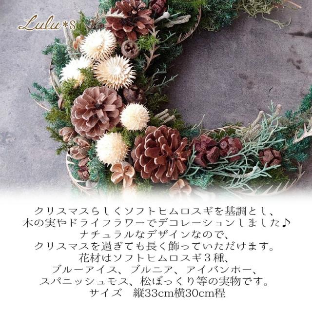 ドライフラワー ソフトヒムロスギのクリスマスリース 松ぼっくり ナチュラル リース 花 誕生日 プレゼント 母の日 贈り物 ギフト 出産祝い 冬 上品 クリスマス 可愛いサイズ:縦33cm横30cm程 Lulu's-2492 Lulu*s ルルズ