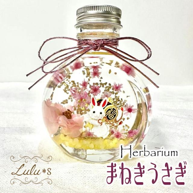 まねきうさぎ ハーバリウム ウサギ 兎 うさぎ 干支 十二支 笑福 招福 福 可愛い 誕生日 プレゼント 母の日 父の日 ギフト 入学 卒業 入社 退職 正月 春 さくら 桜 縁起 Lulu's-2569 Lulu*s ルルズ