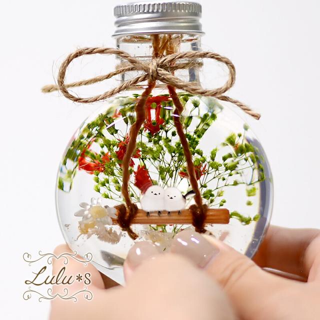 シマエナガ ハーバリウム プリザーブドフラワードライフラワー カワイイ 雪の妖精 可愛い かわいい 誕生日 プレゼント 母の日 父の日 ギフト 社 退職 北海道 インスタ映え Lulu's-0549 Lulu*s ルルズ