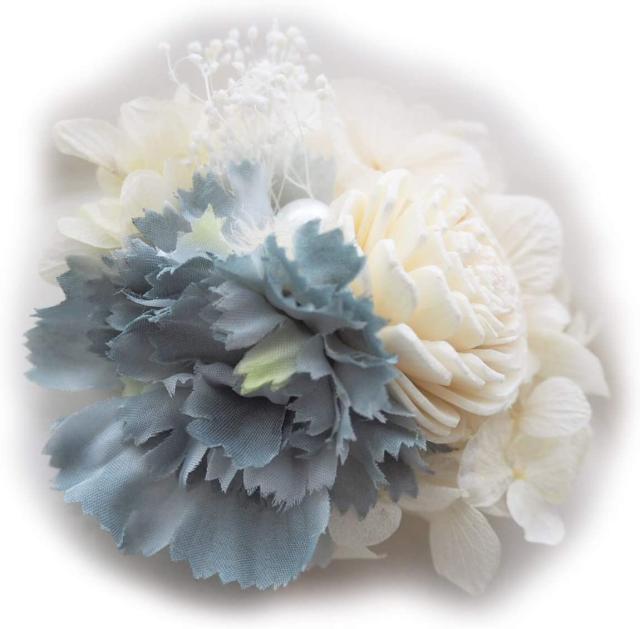2way コサージュ&クリップ 百貨店 ポップアップでも大人気だったコサージュ!!グリーンティコサージュ☆ ◆卒業式や入学式 セレモニーにオススメのコサージュです。 ◆コサージュとしてはもちろん? 髪かざりとしても使える2way?? ??胸元コサージュ ??髪かざり ??帽子やバッグ等 ??カーテンタッセル・インテリアとして 色んな用途で活躍できます!! ◆プリザーブドフラワー、アーティフィシャルフラワー、ソーラーフラワー 、パール等、ナチュラルでロマンティックな素材をギュッと贅沢にミックスした高級感あるコサージュです。 ◆ギフト にもオススメです!! ◆サイズ : 7cm ◆カラー :ブルーグリーン オフホワイト のミックス ◆素材 : プリザーブドフラワー(紫陽花、かすみ草)ソーラーフラワー、アーティフィシャルフラワー、パール