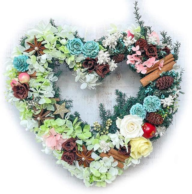 ハートリース ドライフラワー プリザーブドフラワー ナチュラルリース サイズ:幅約26cm×高さ約26cm×奥行約8cm ハートリース lulus-1604 Lulu*s ルルズ